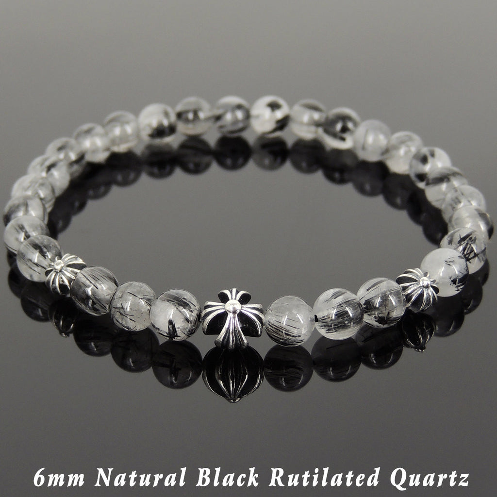 Materials: Healing Stone,Gemstone,Black Rutilated Guartz,925 Sterling Silver,Elastic Cords