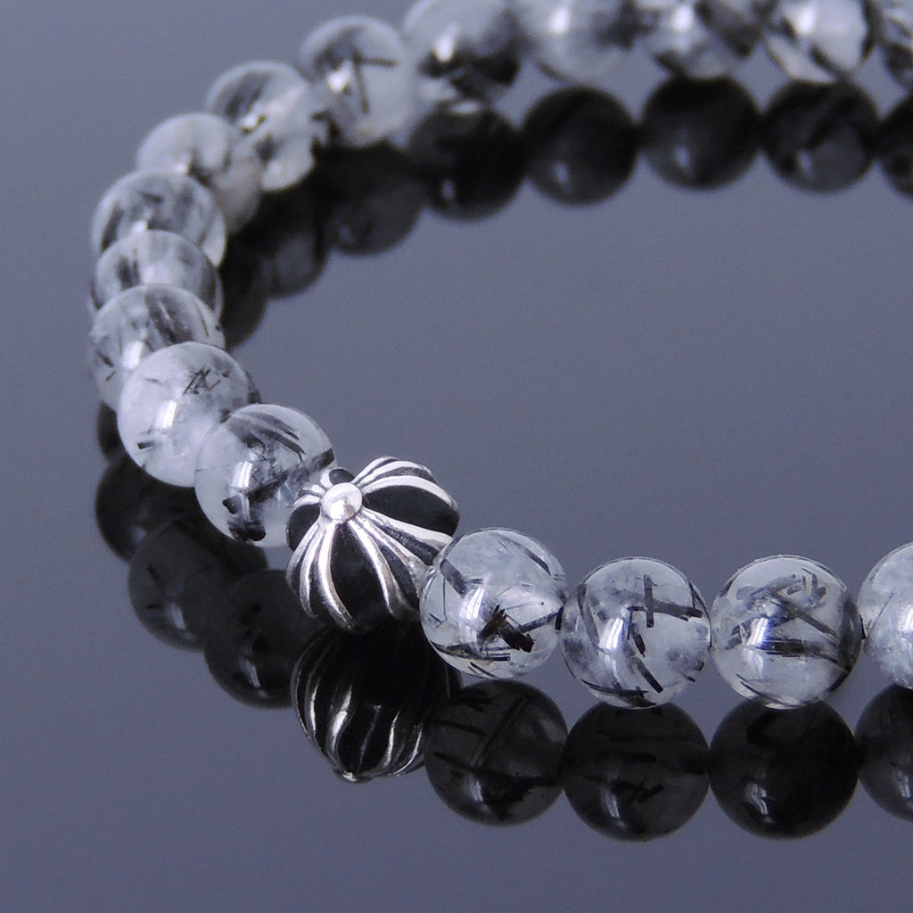 Materials: Healing Stone,Gemstone,Black Rutilated Guartz,925 Sterling Silver,Elastic Cords