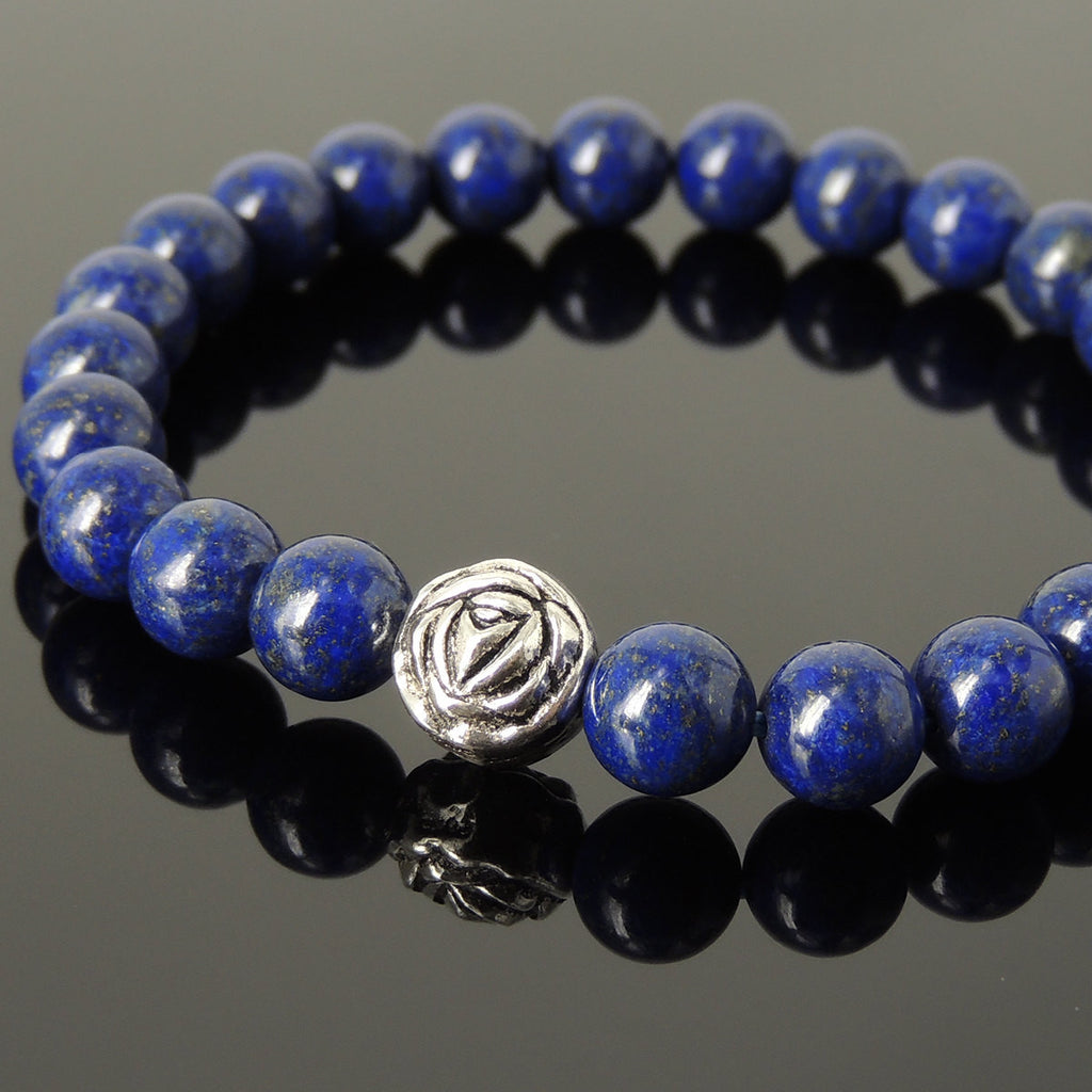 Handmade Men Women Gemstone Bracelet Lapis 925 Sterling Silver Rose Bead DiyNotion BR412