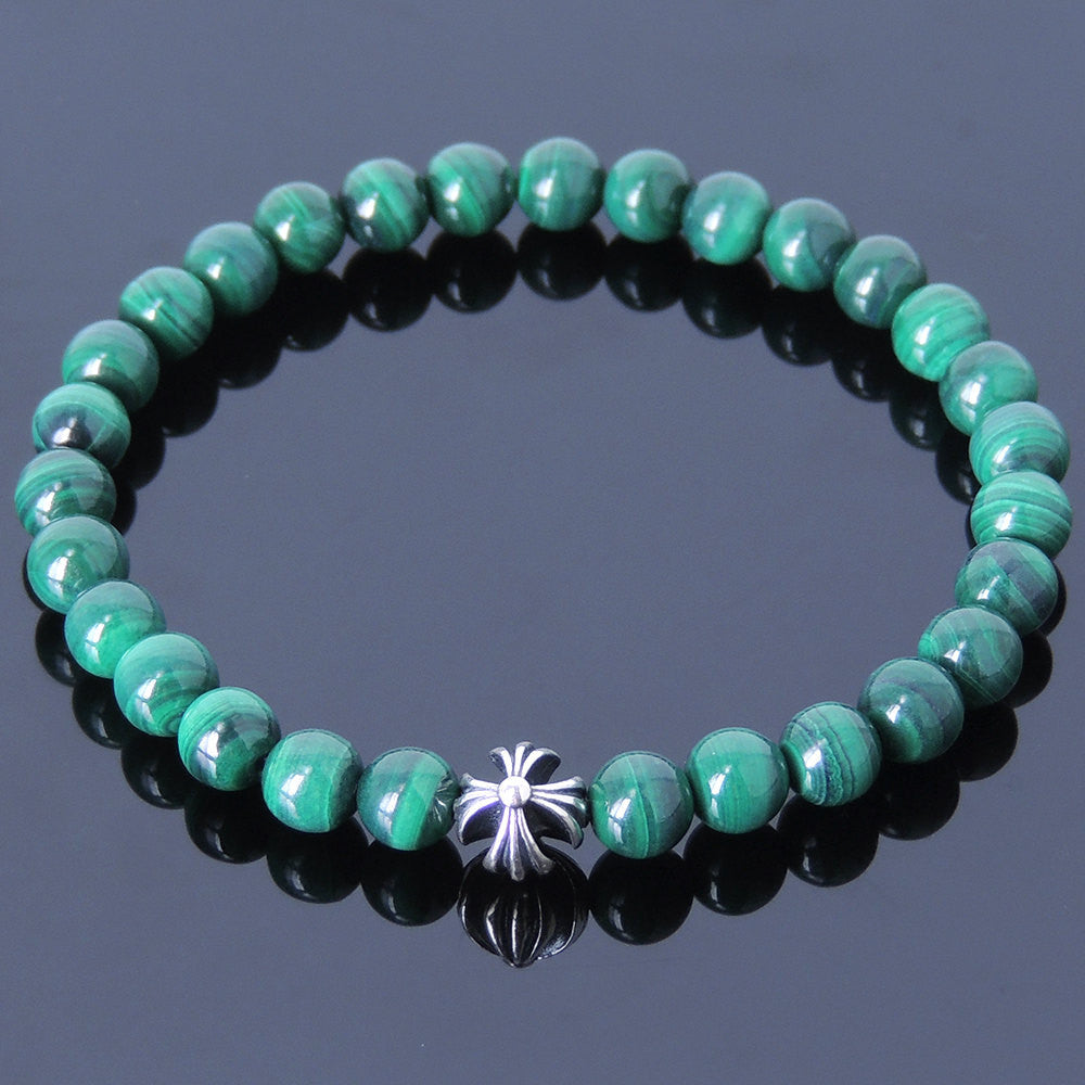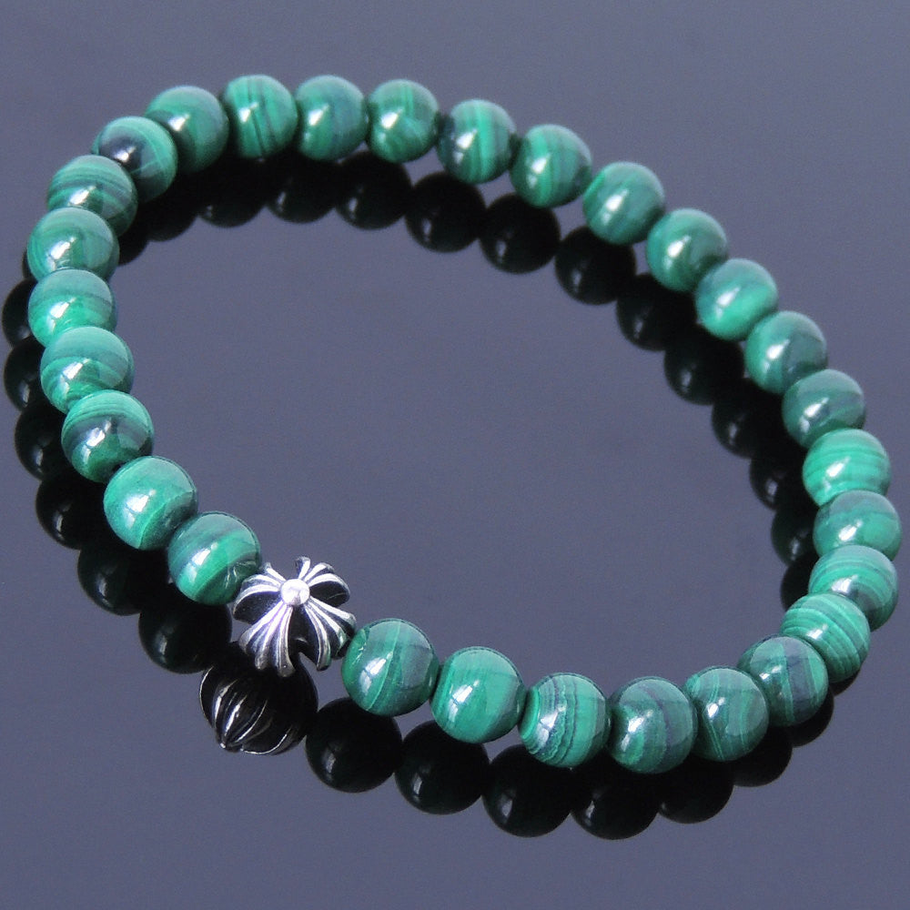 Materials: Healing Stone,Gemstone,925 Sterling Silver,Malachite,Chrome Heart Style,Elastic Cords