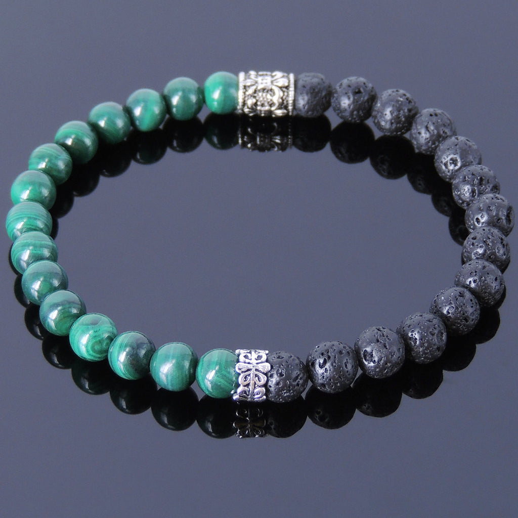 Materials: Healing Stone,Gemstone,Lava Rock,Malachite,925 Sterling Silver,Elastic
