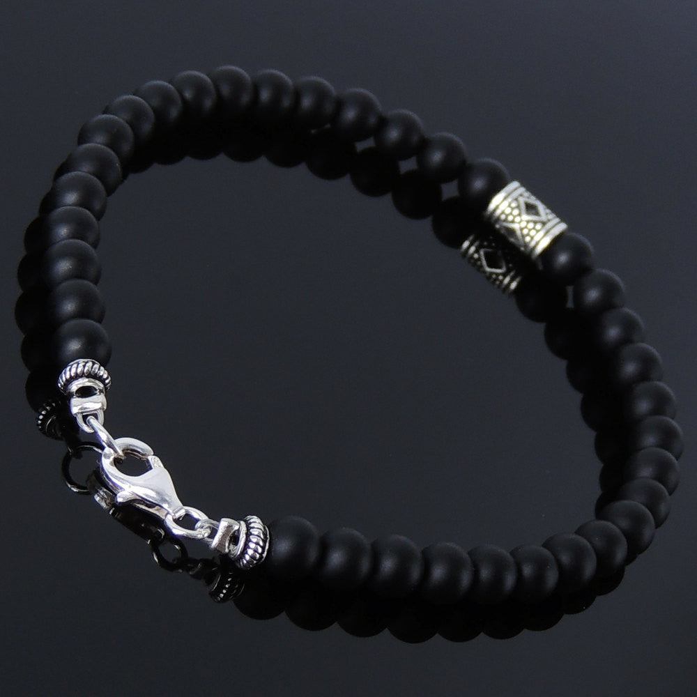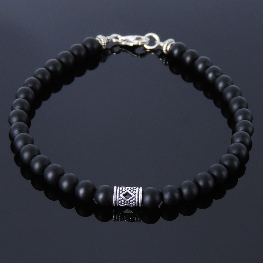 Handmade Men Women Gemstone Bracelet Matte Black Onyx 925 Sterling Silver Celtic Bead Clasp DiyNotion BR171