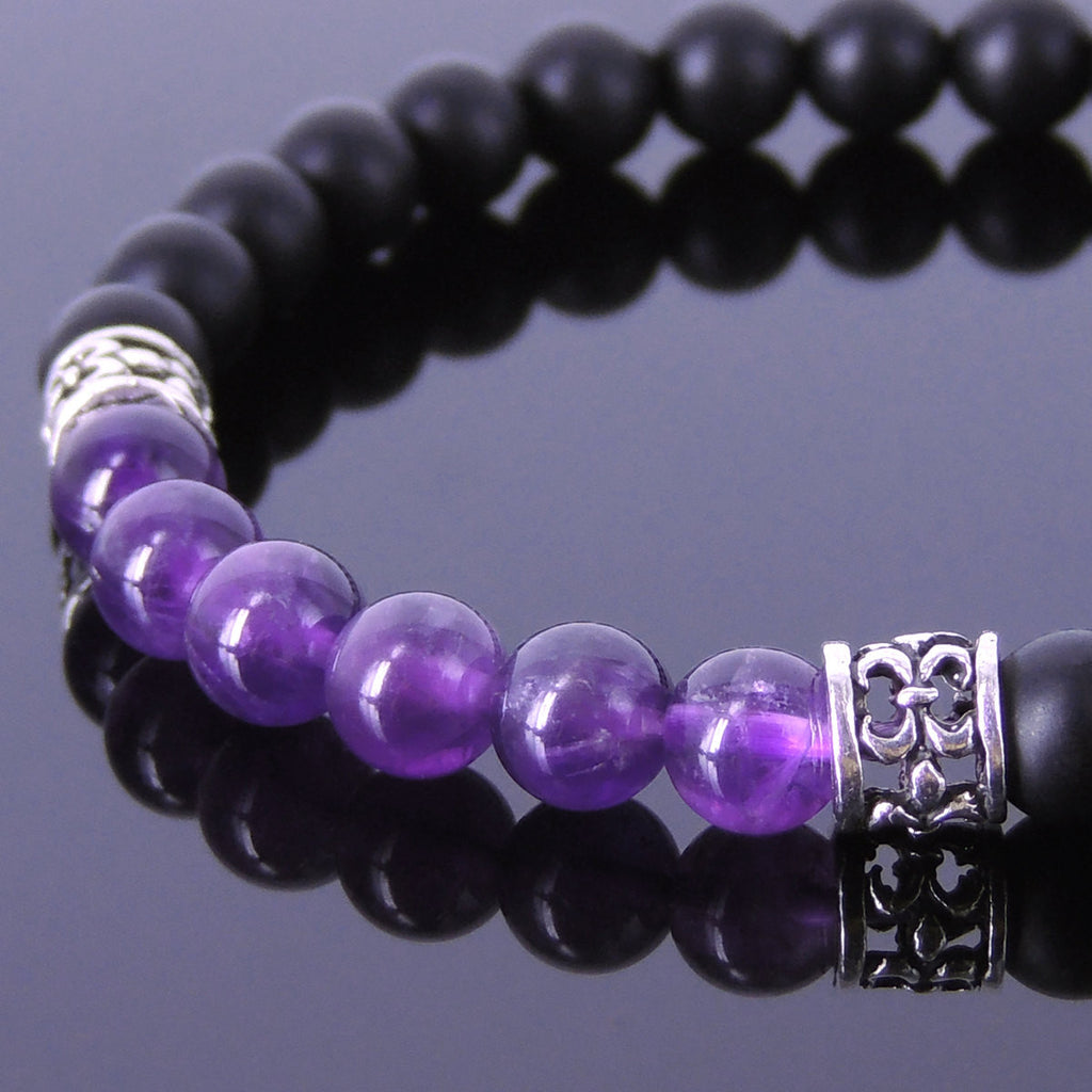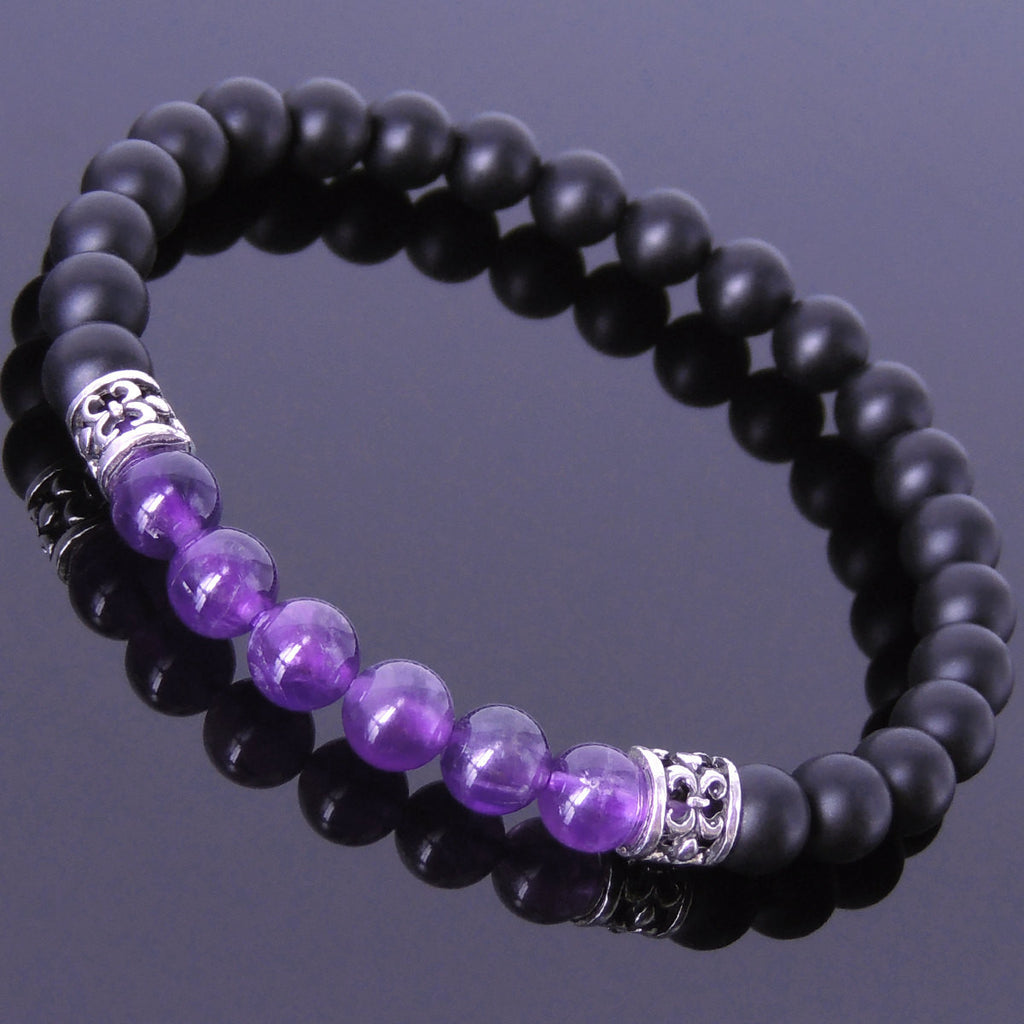 Materials: Healing Stone,Gemstone,Amethyst,Matte Black Onyx,925 Sterling Silver,Elastic Cords