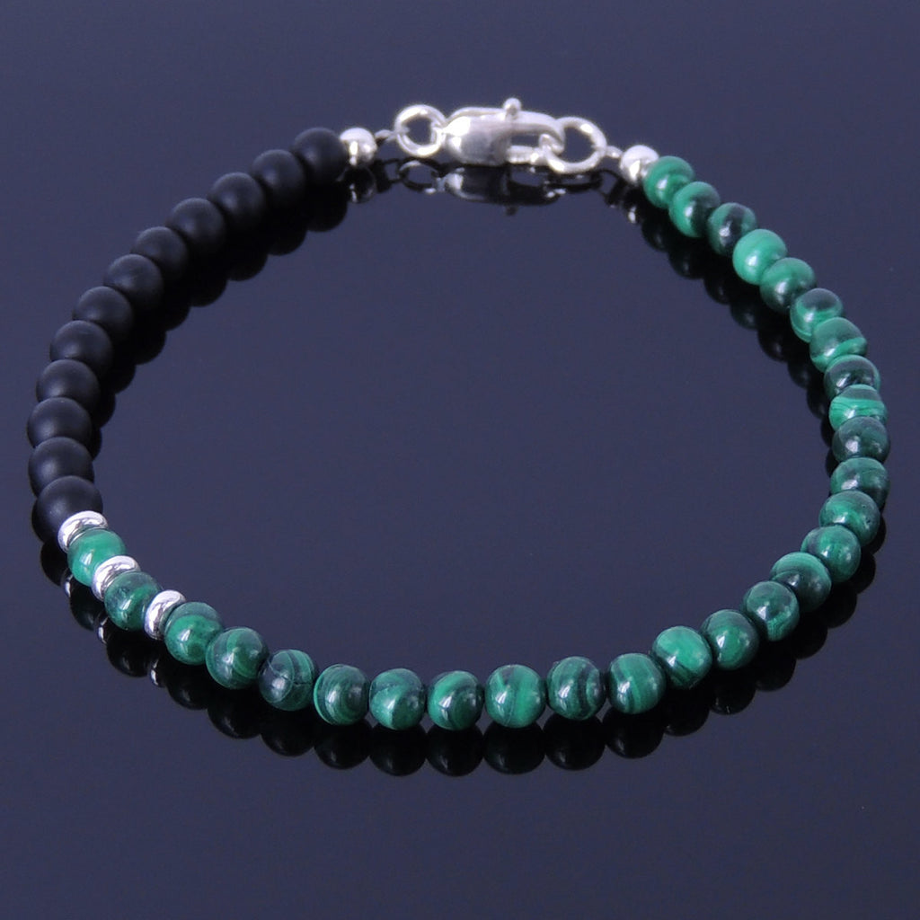 Handmade Men Women Gemstone Bracelet Matte Black Onyx Malachite 925 Sterling Silver Bead Clasp DiyNotion BR259