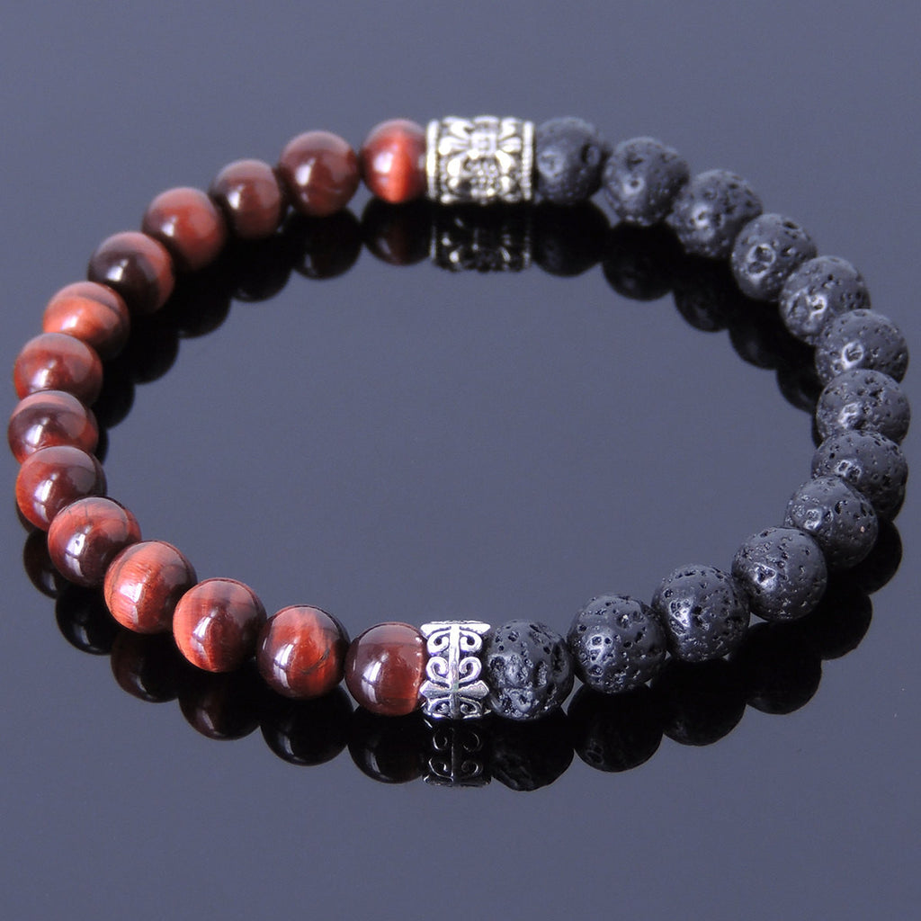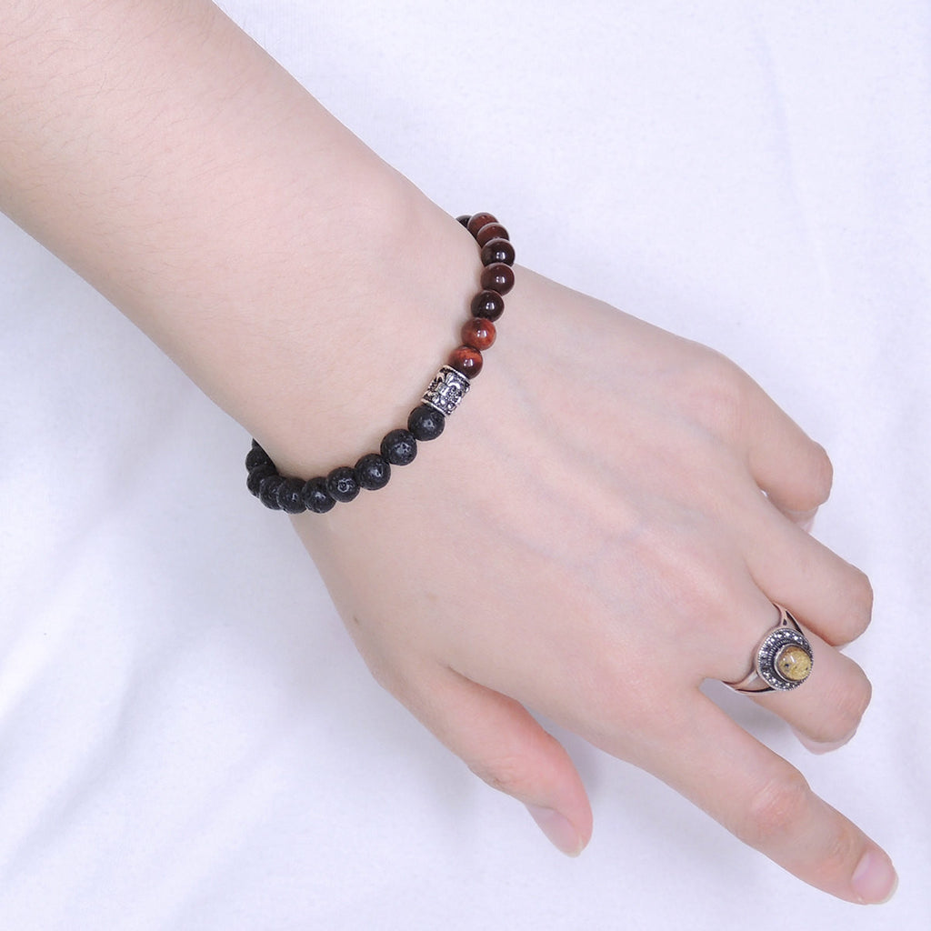 Materials: Healing Stone,Gemstone,Red Tiger Eye,Lava Rock,925 Sterling Silver,Elastic Cords