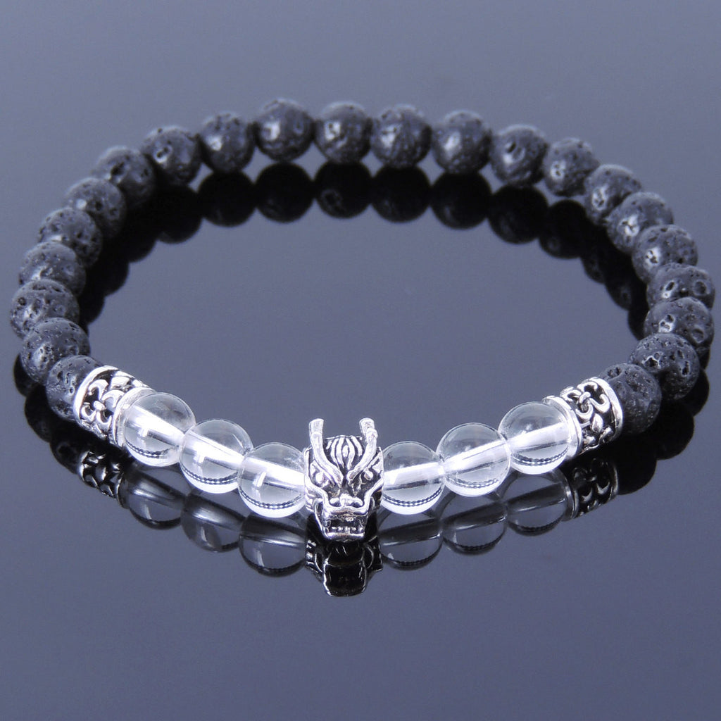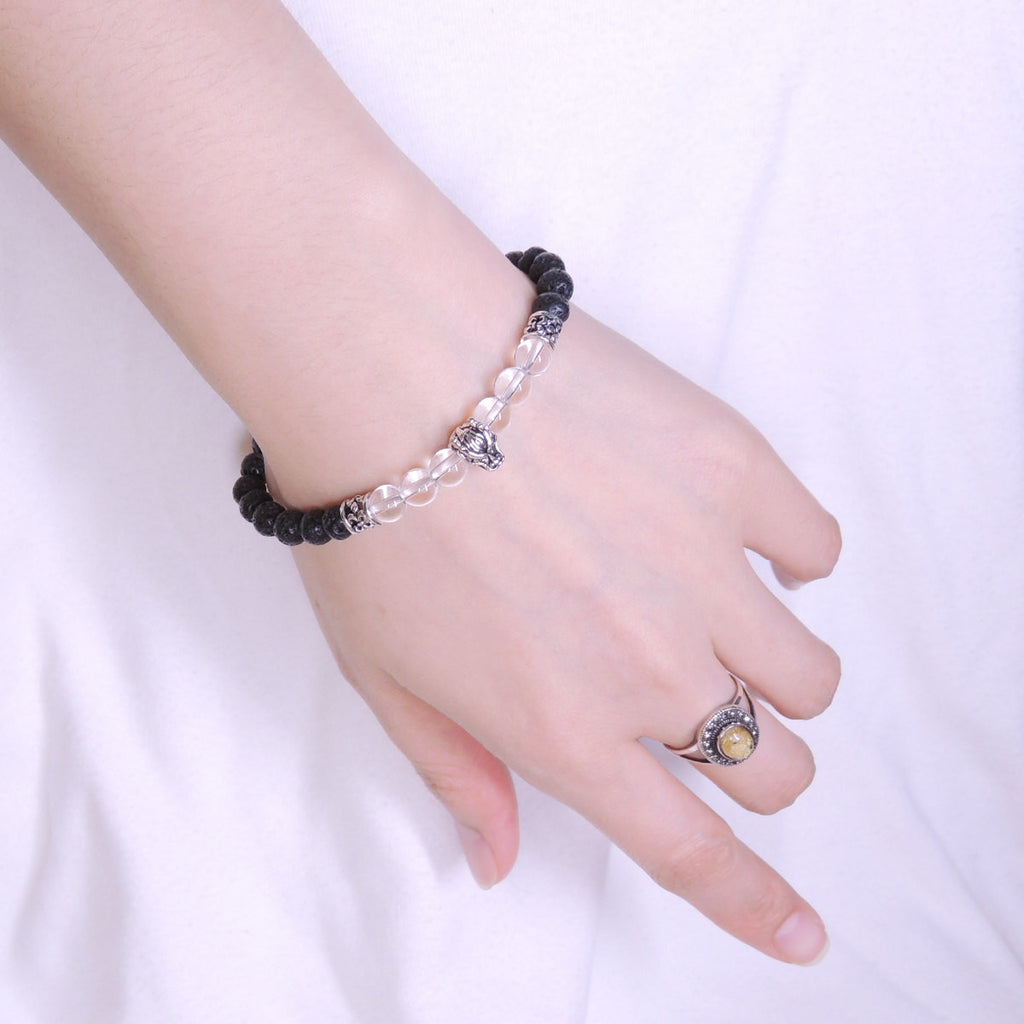 Handmade Men Women Gemstone Bracelet White Crystal Lava Rock 925 Sterling Silver Wolf DiyNotion BR406