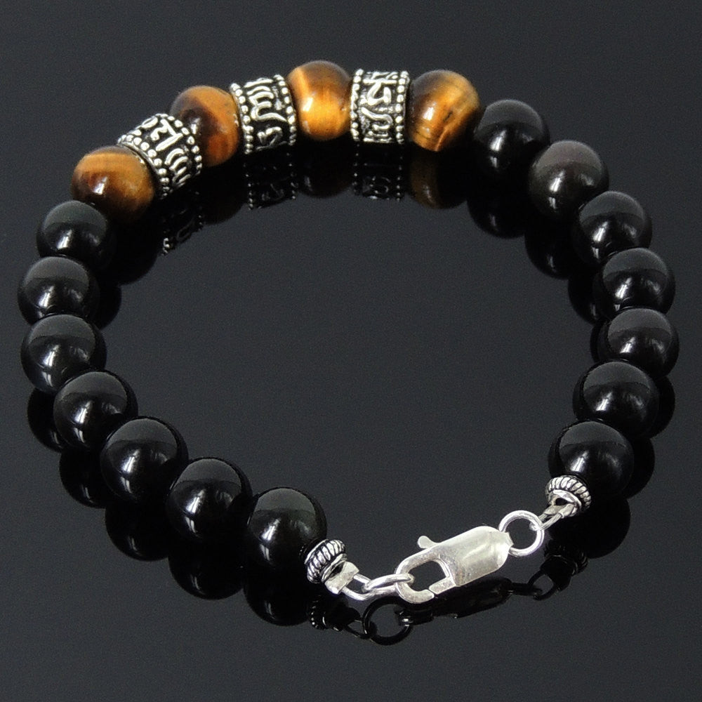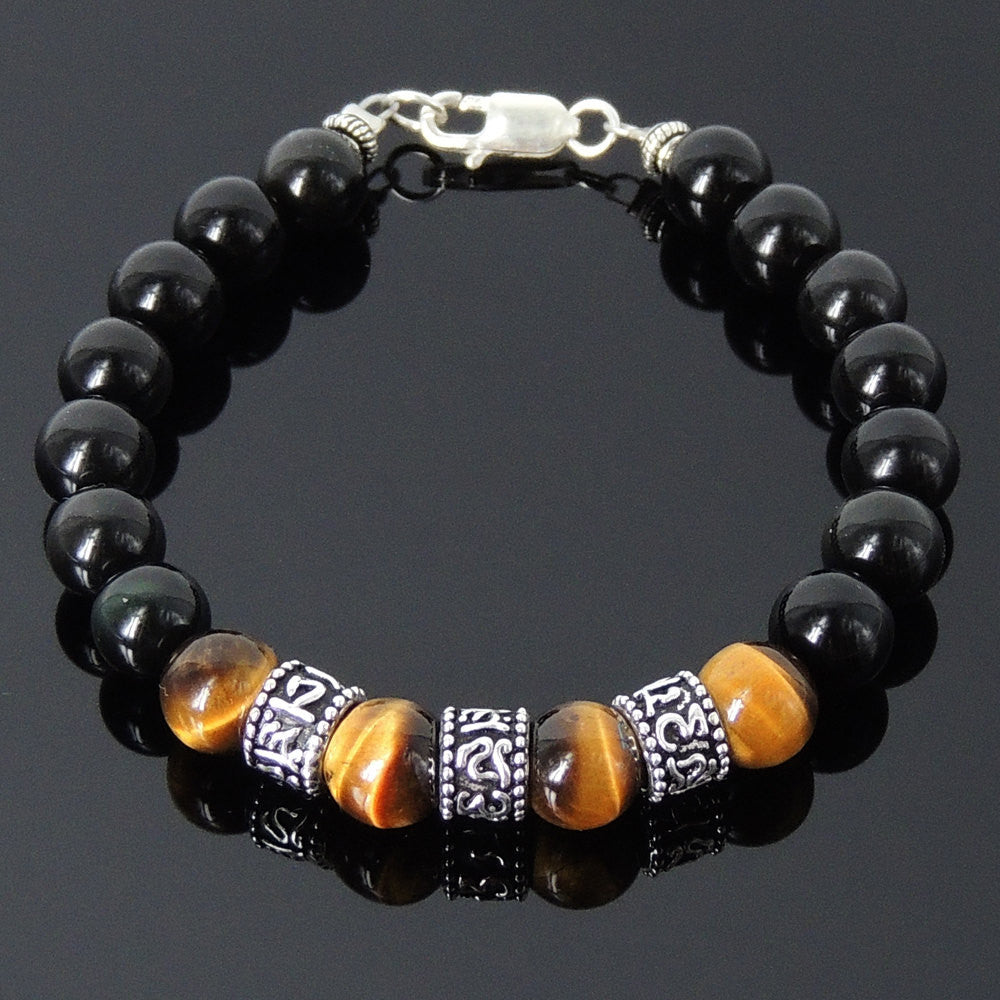 Materials: Gemstone,Black Obsidian,Tiger Eye,925 Sterling Silver