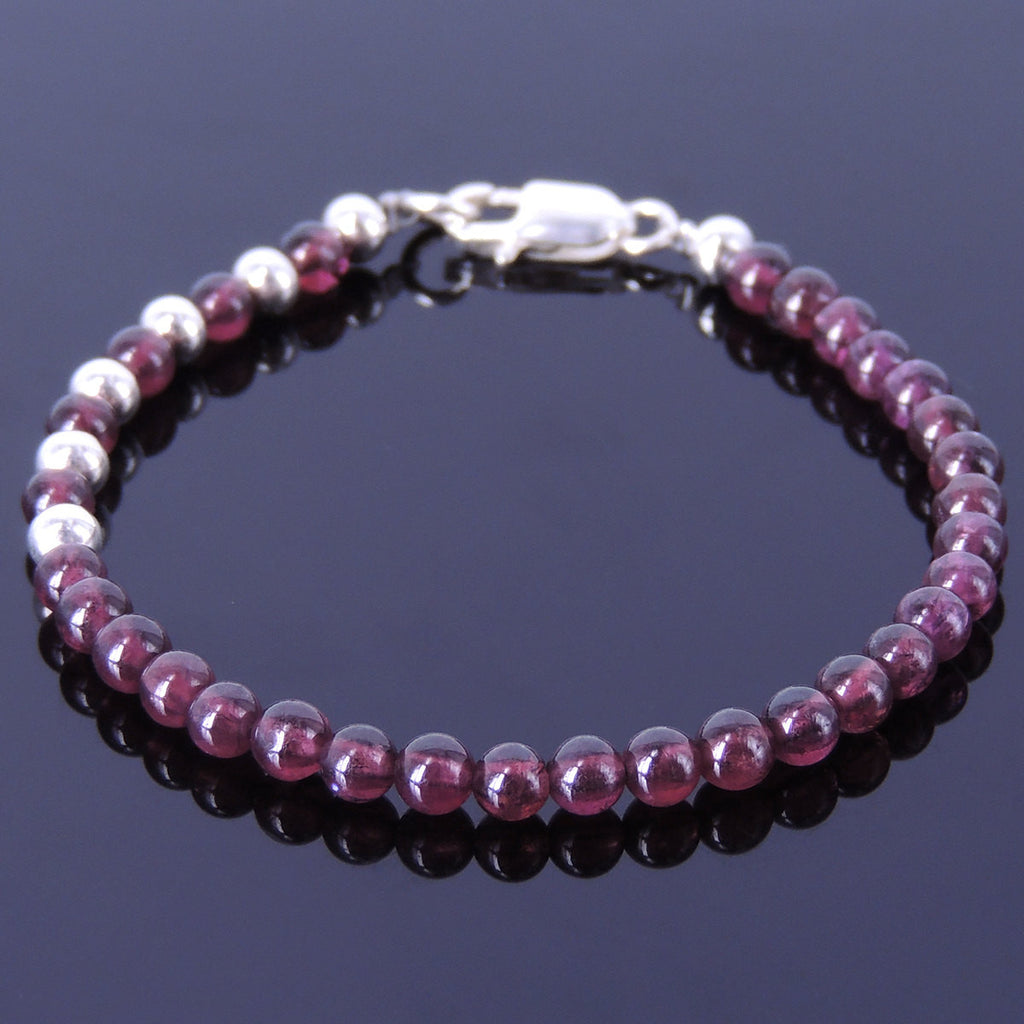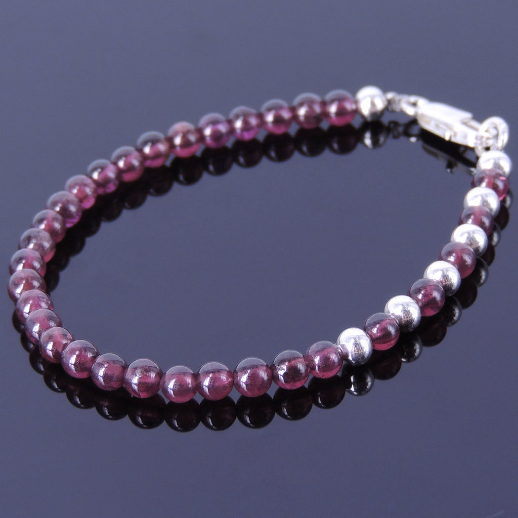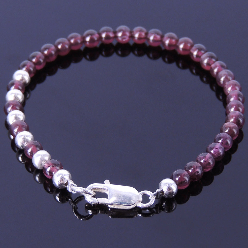 Handmade Women Gemstone Bracelet Natural Brazil Purple Garnet 925 Sterling Silver Bead & Clasp DiyNotion BR087