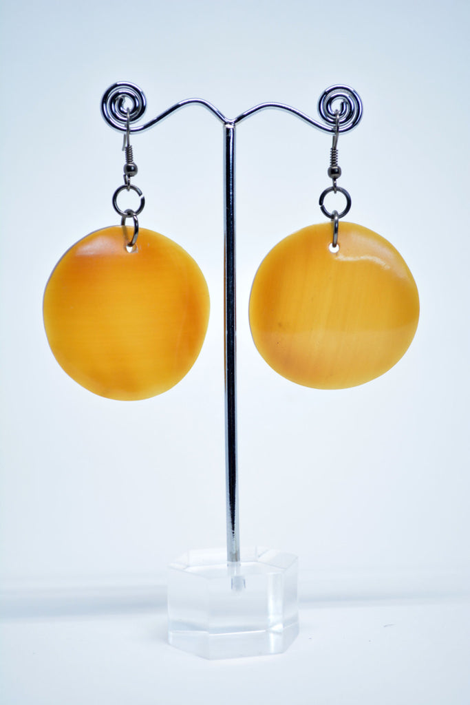 Simple and minimalist dangle Earrings Made from natural horne in a round shape.