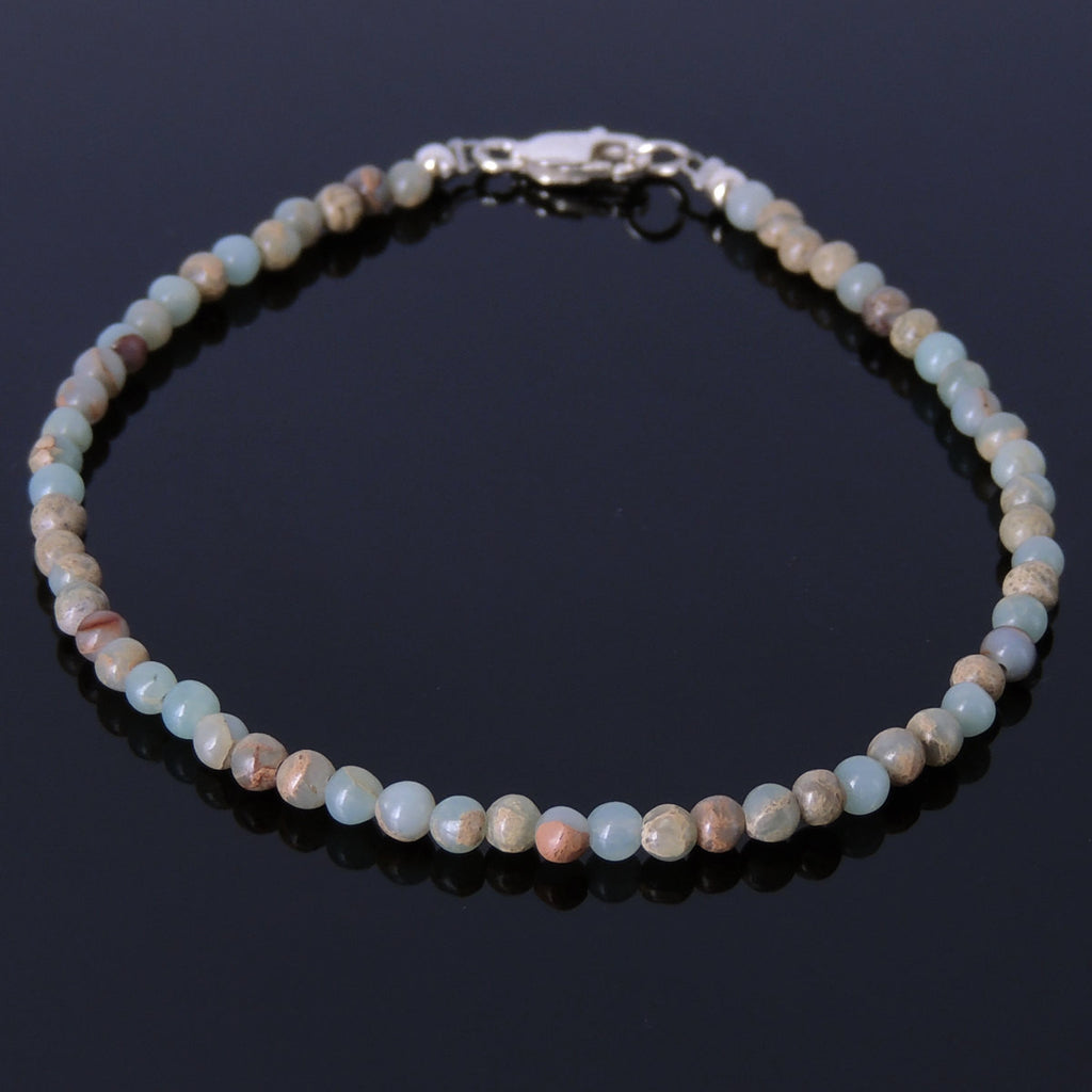 Jasper Stone Anklet Gemstone 925 Sterling Silver Clasp for Men Women DiyNotion Handmade AN001