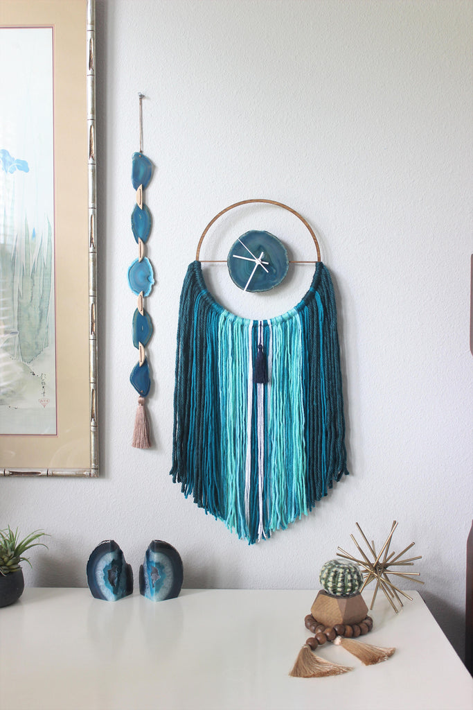 Materials: agate,agate geode,teal,teal agate,teal agate slice,teal geode,teal blue,teal blue agate,wood,yarn,fiber,turquoise,FREE SHIPPING