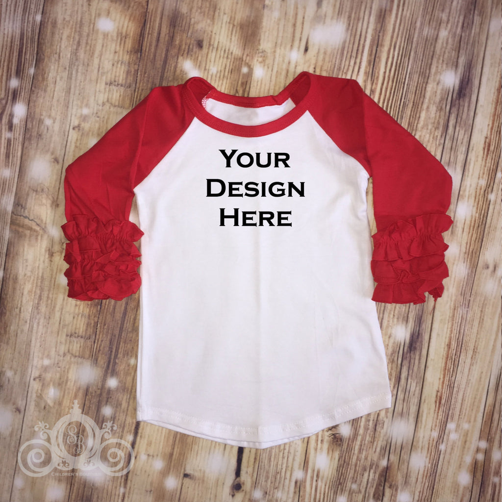 Girls Red Custom Icing Ruffle Raglan, Personalized Shirt, Monogram, Girl, Baby Shower Gift, Toddler ShirtnnThis listing is for the specific design shown. If you are looking for custom designs, please choose the blank "Custom Design" shirt in the color of your choice. Please add a photo or comment in the box at checkout to let us know what design you would like on your shirt. nnOur 3/4 sleeve ruffle Raglans are the perfect little girls top. They can be customized with any monogram or design of your choice and come in a variety of color options! They make the perfect matching family shirts! Mix & match colors and styles to create your perfect look! nnTrue to size