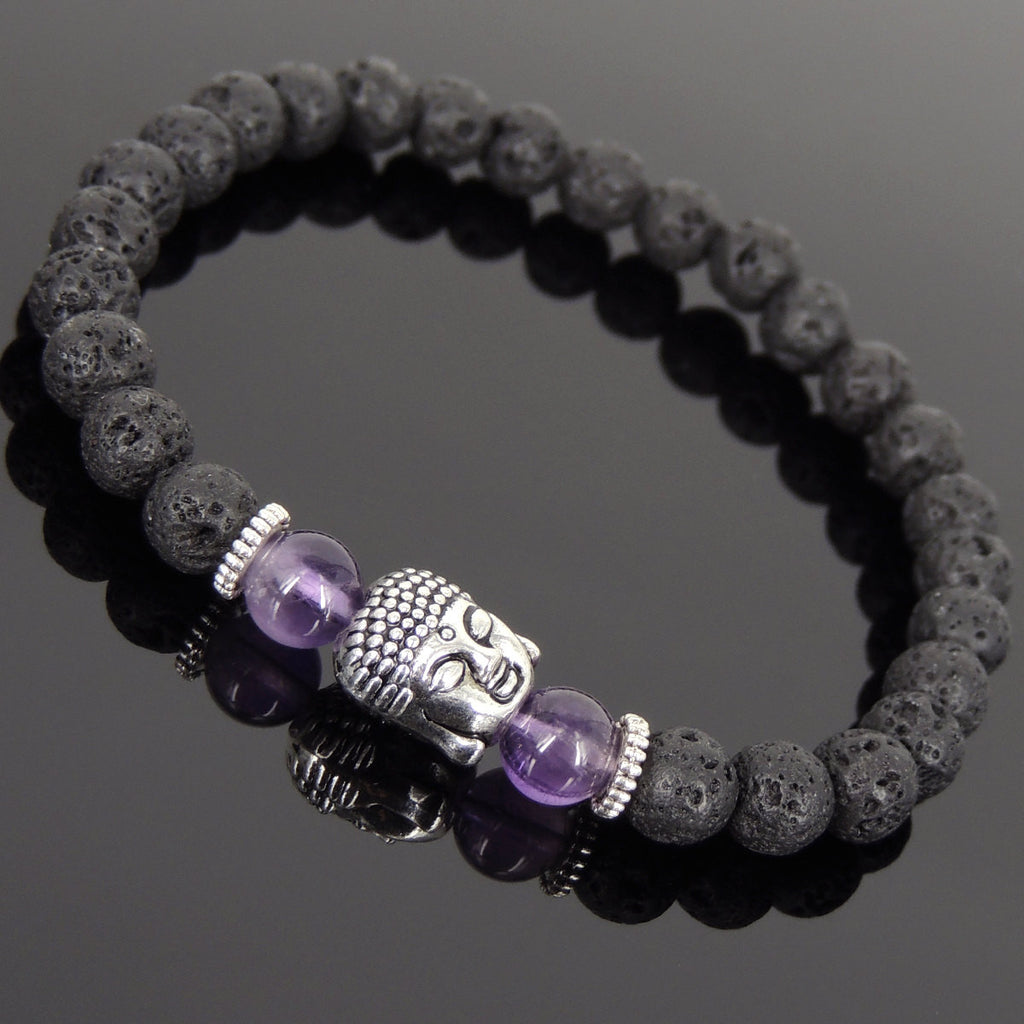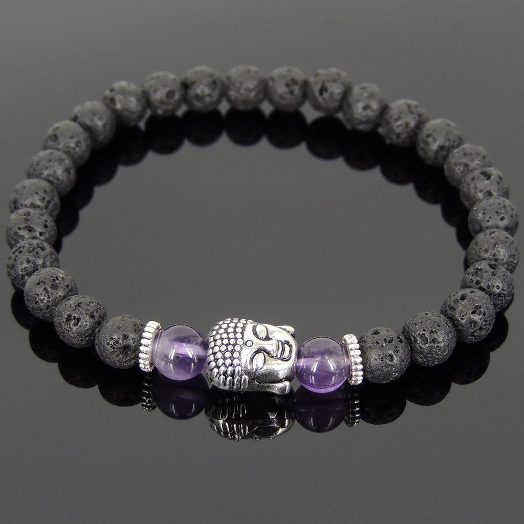 Materials: Lava Rock,Amethyst,Tibetan Silver,Elastic Cords