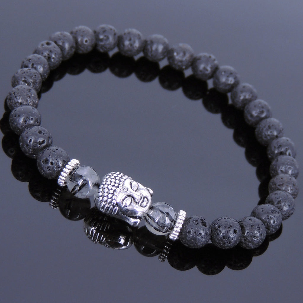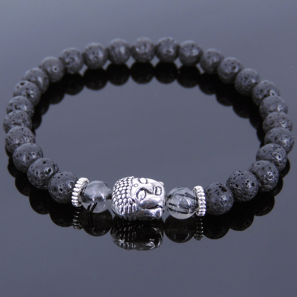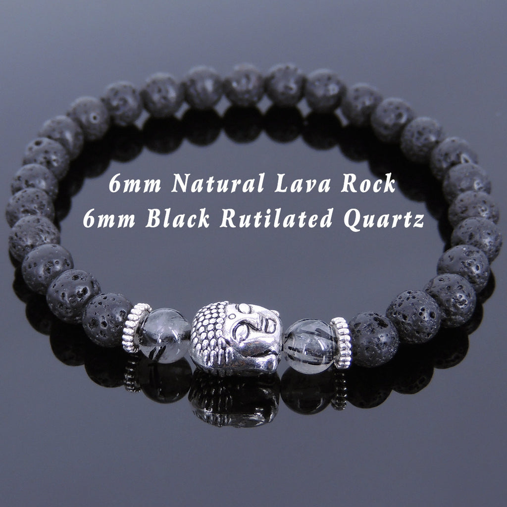 Materials: Lava Rock,Black Rutilated Quartz,Tibetan Silver,Elastic Cords