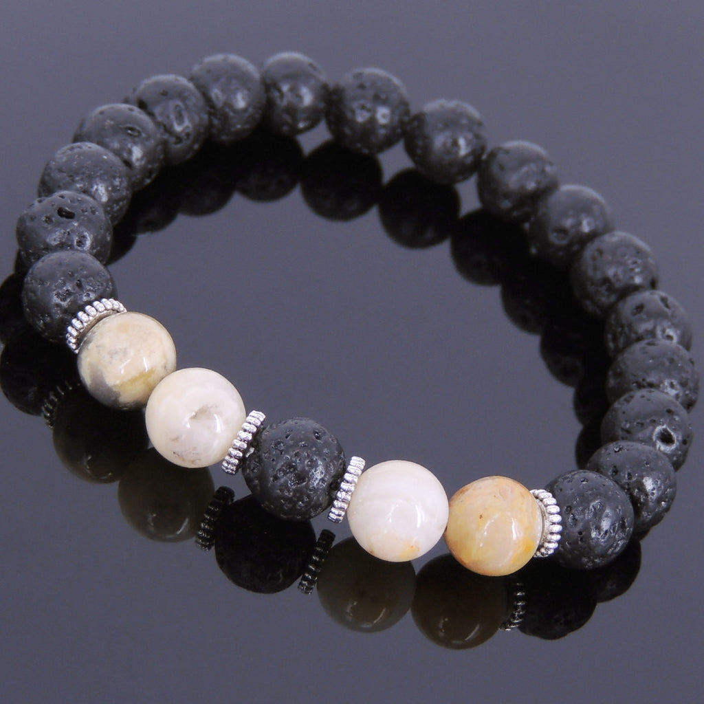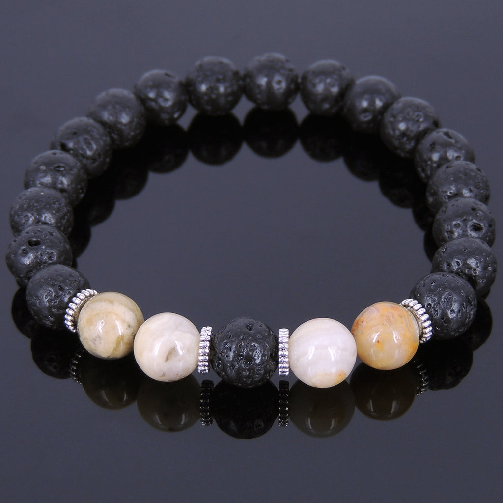 Materials: 8mm Lava Rock,8mm Crazy Agate,Tibetan Silver,Elastic Cords