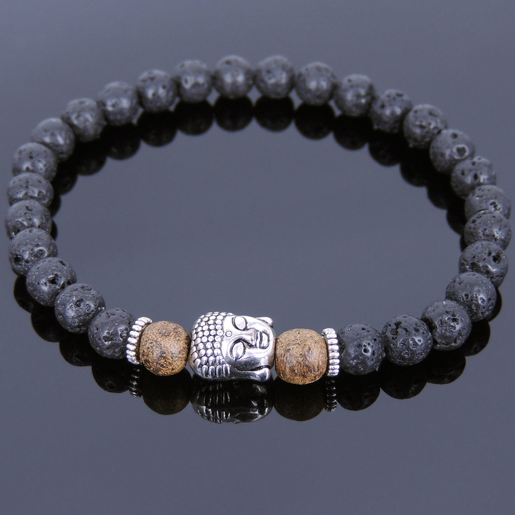 Materials: Lava Rock,Golden Agarwood,Tibetan Silver,Elastic Cords
