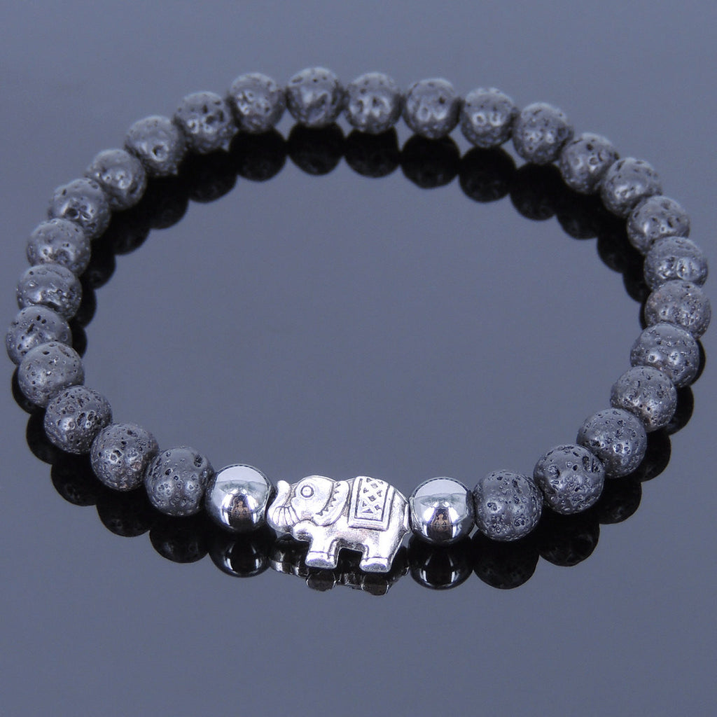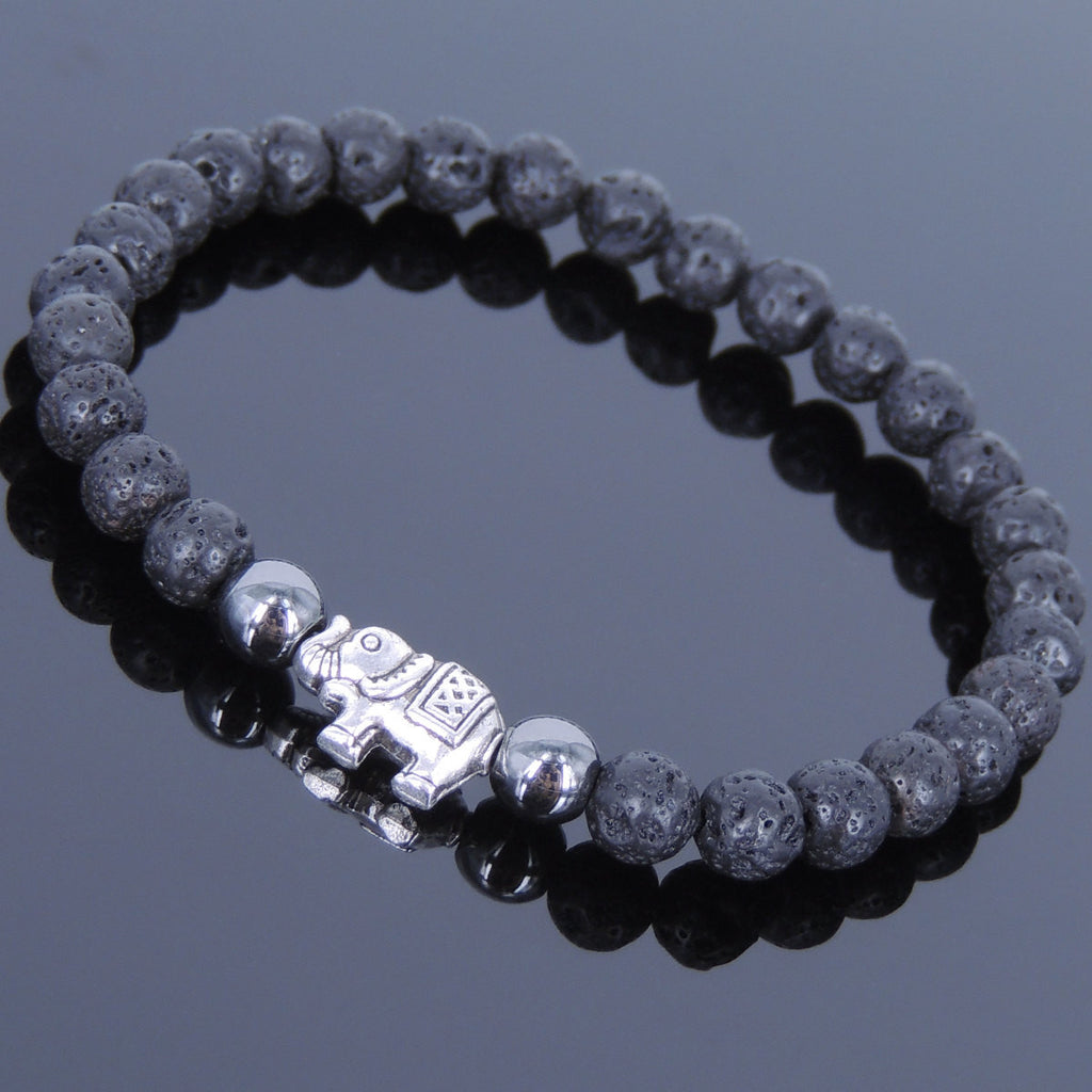 Lava Rock Hematite Tibetan Silver Bracelet Elephant Yoga Mala for Men Women DiyNotion Handmade T050
