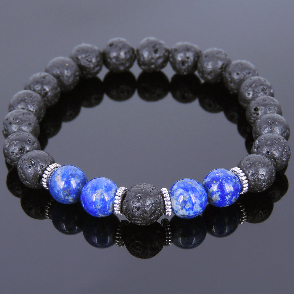 Materials: 8mm Lava Rock,8mm Lapis Lazuli,Tibetan Silver,Elastic Cords