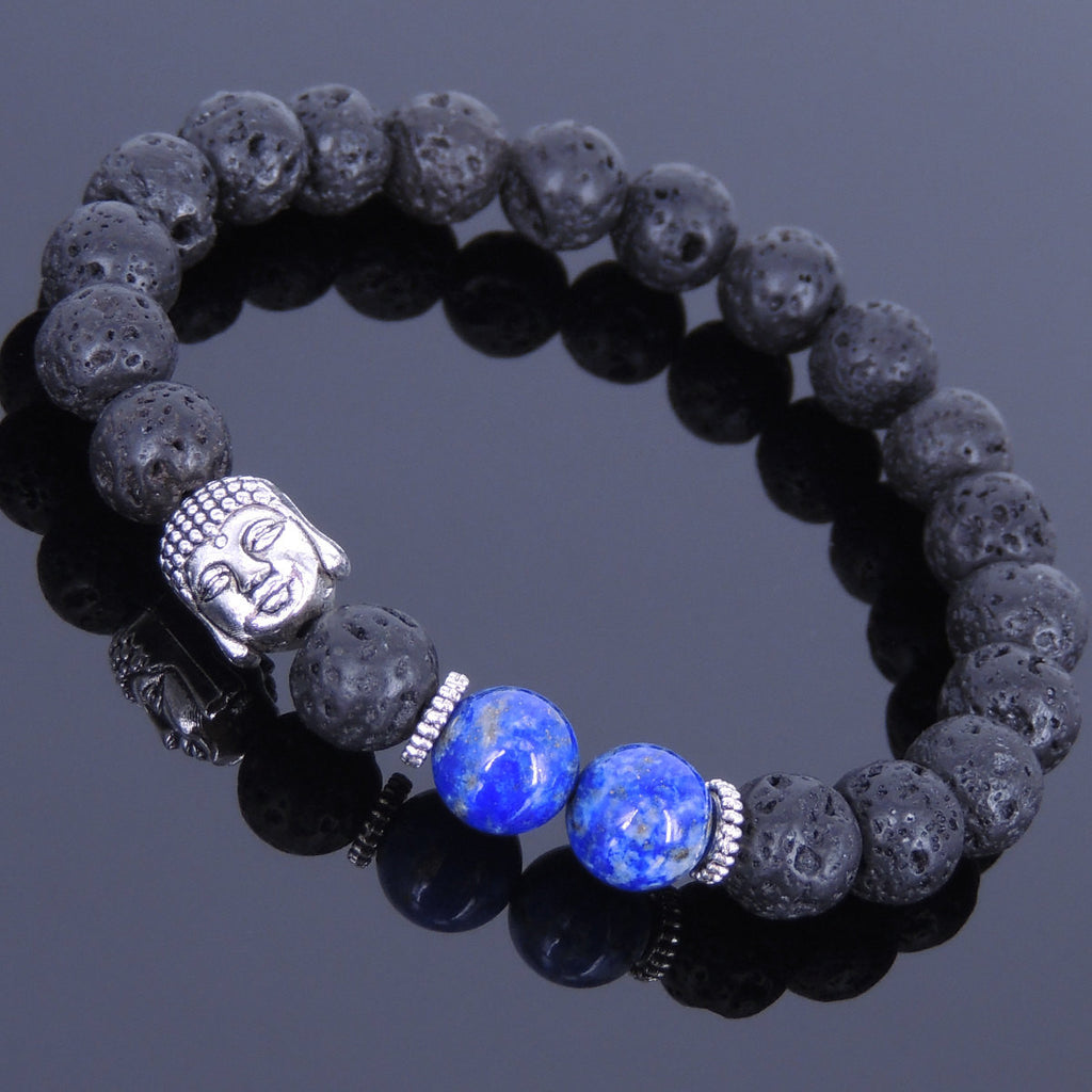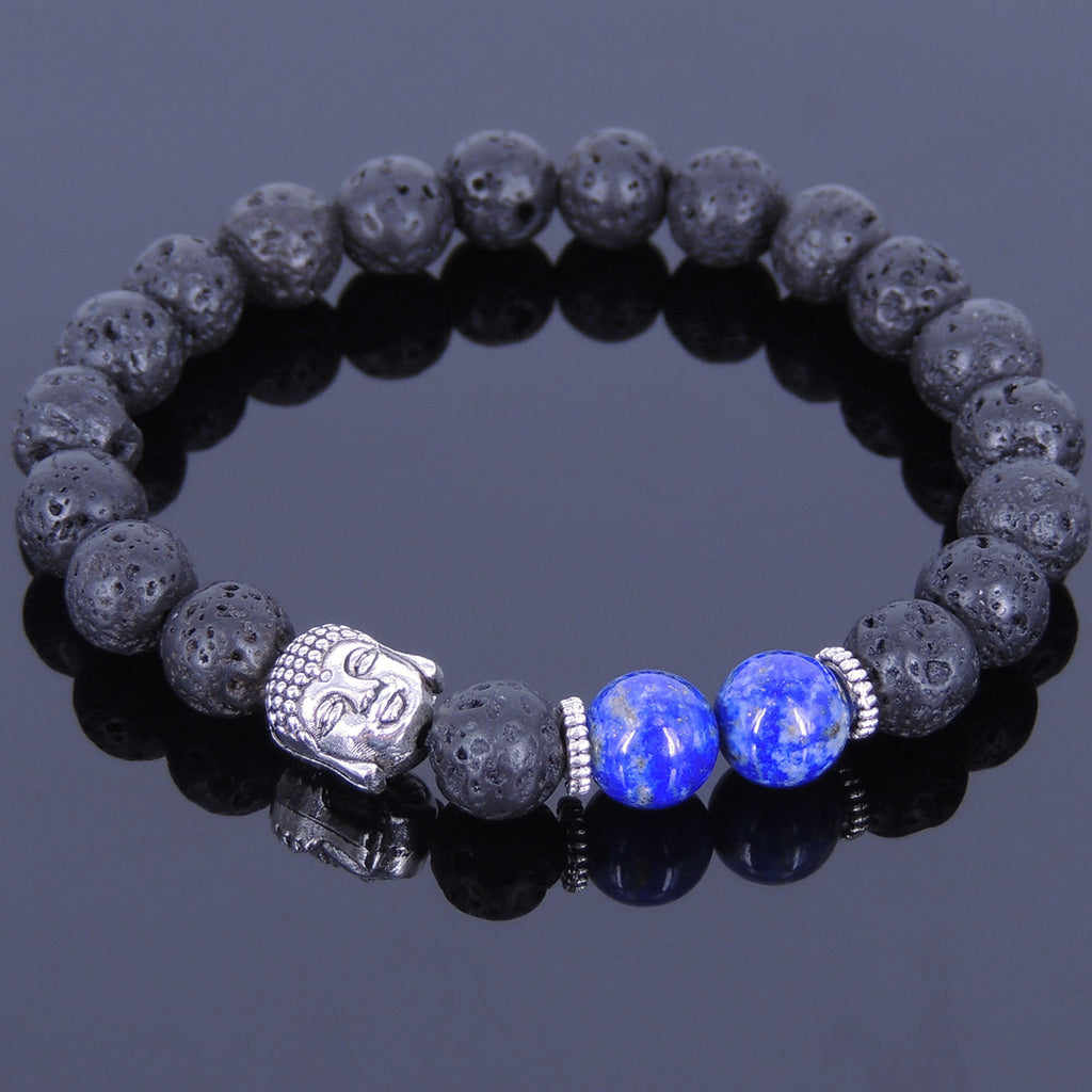 Materials: Lava Rock,Lapis Lazuli,Tibetan Silver,Elastic Cords