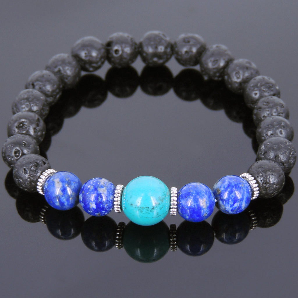 Materials: 8mm Lava Rock,8mm Lapis Lazuli,10mm Turquoise,Tibetan Silver,Elastic Cords