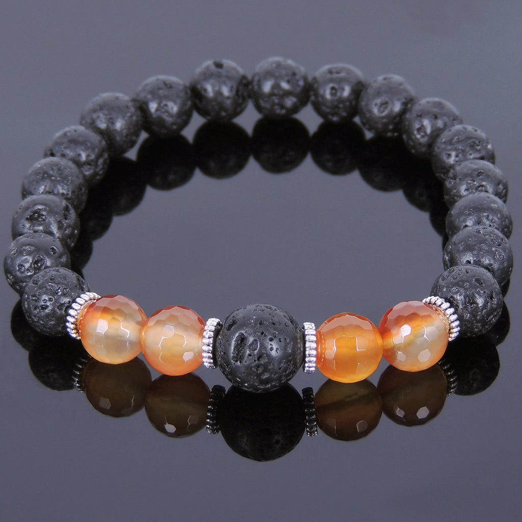 8mm/10mm Natural Lava Rock & 8mm Faceted Red Carnelian