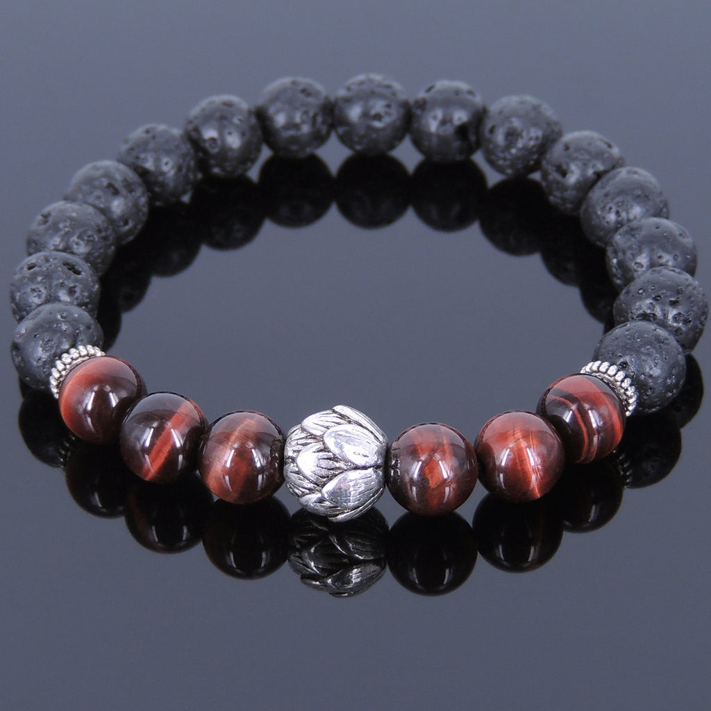 Materials: Lava Rock,Tibetan Silver,Red Tiger Eye,Elastic Cords