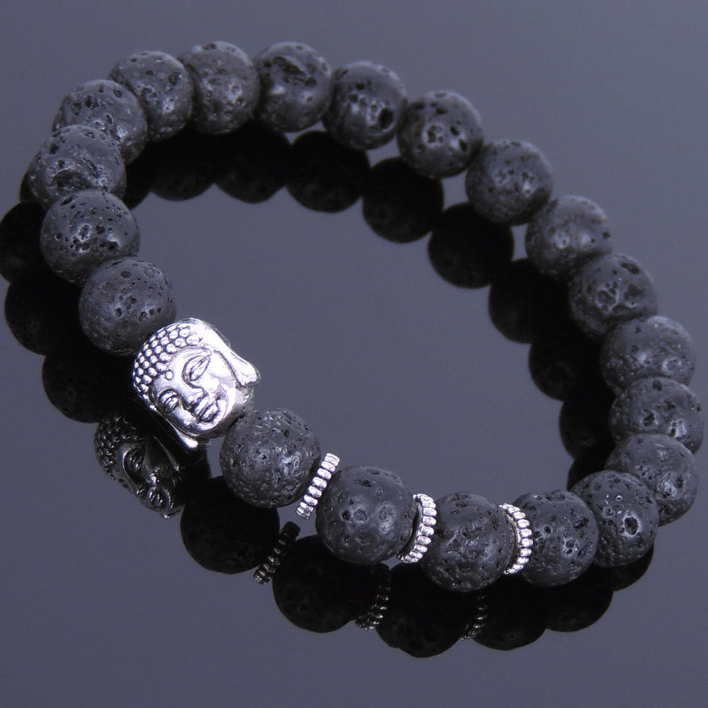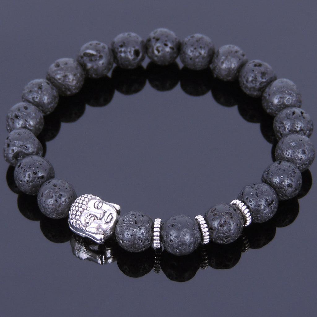 Materials: Lava Rock,Tibetan Silver,Elastic Cords