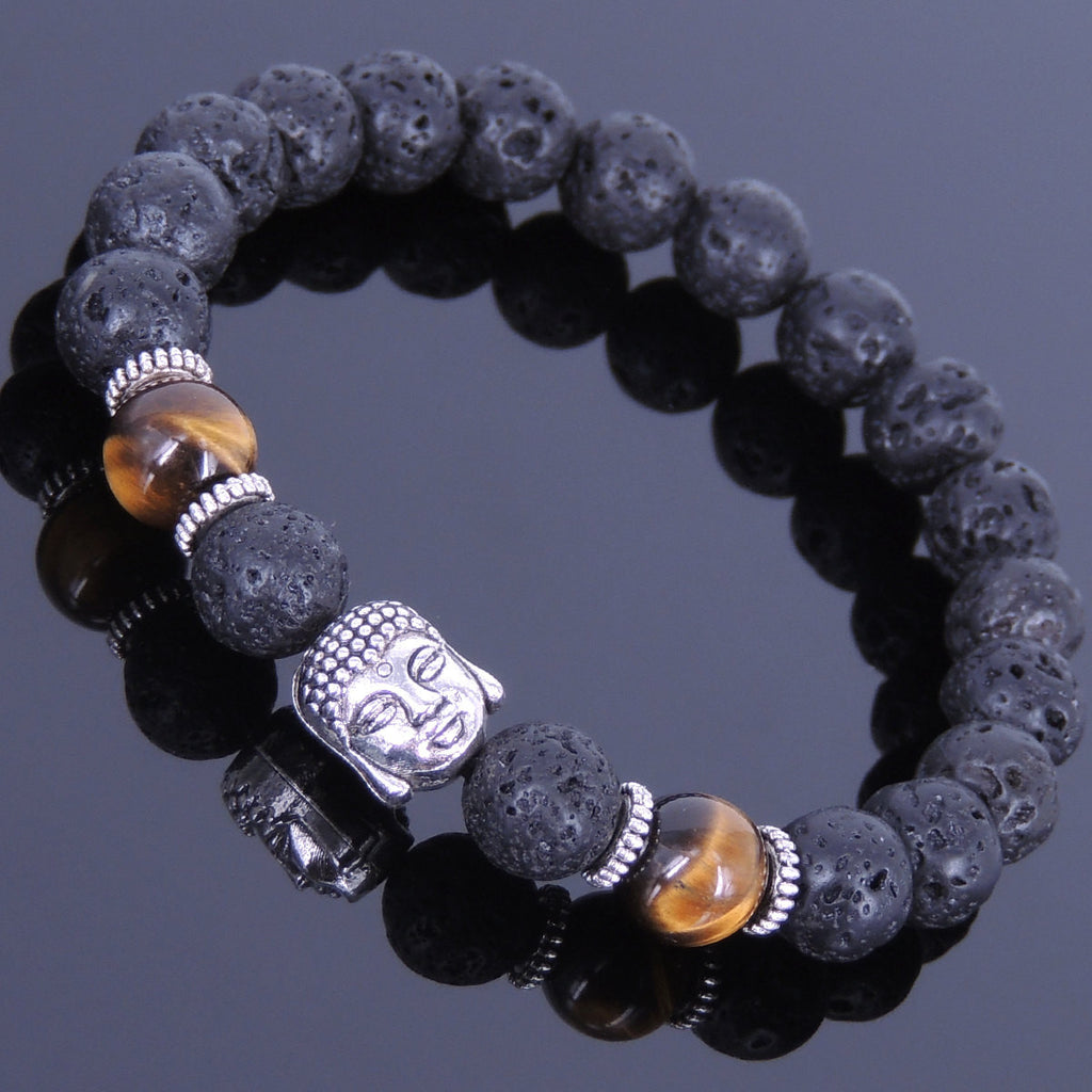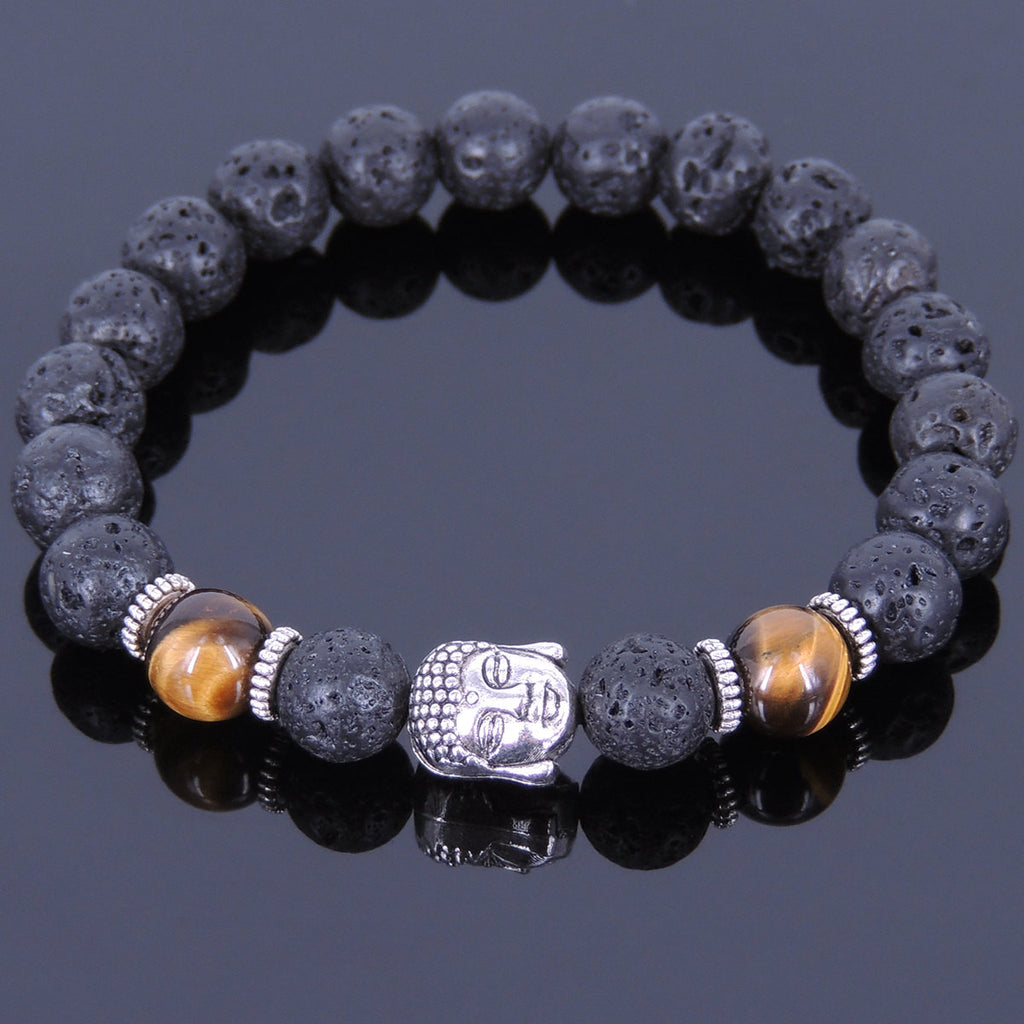 Materials: Lava Rock,Brown Tiger Eye,Tibetan Silver,Elastic Cords