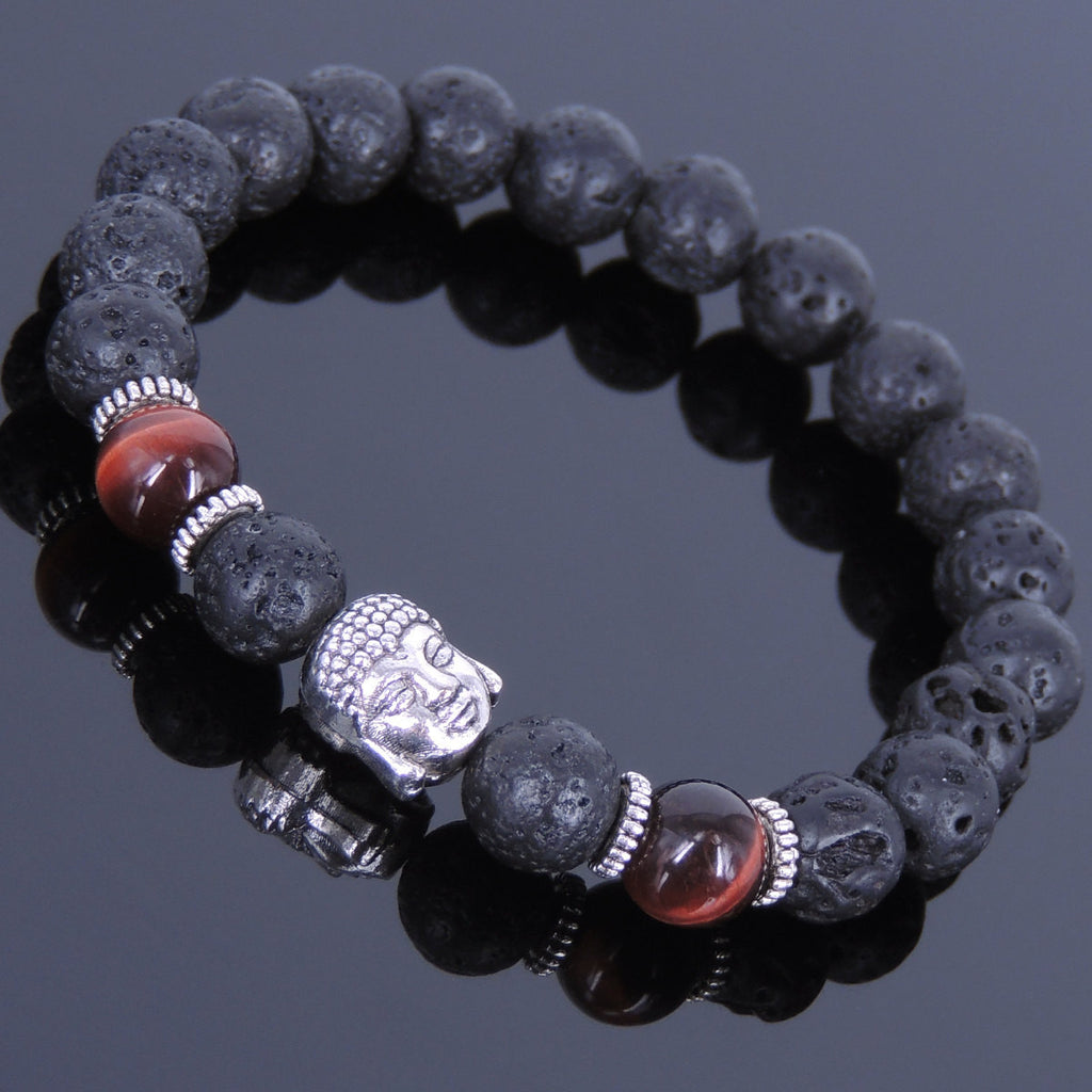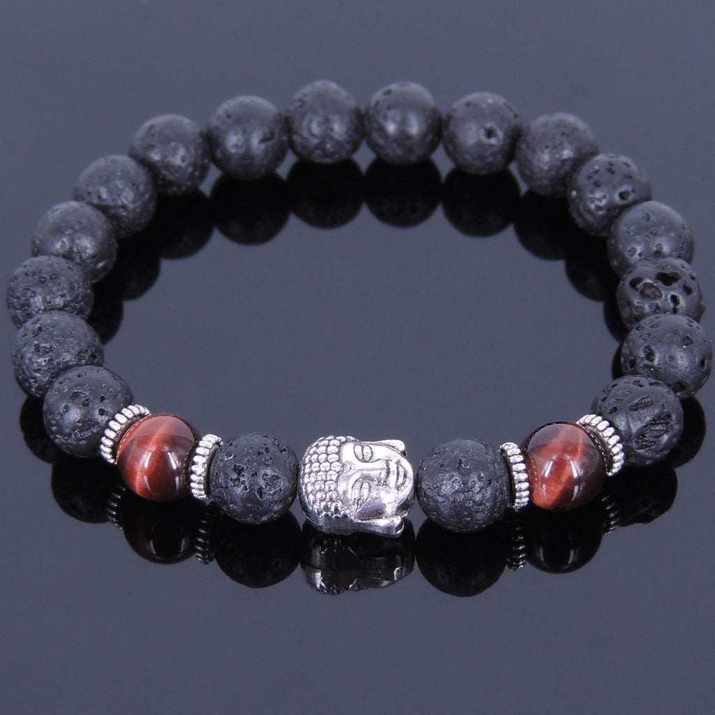 Materials: Lava Rock,Red Tiger Eye,Tibetan Silver,Elastic Cords