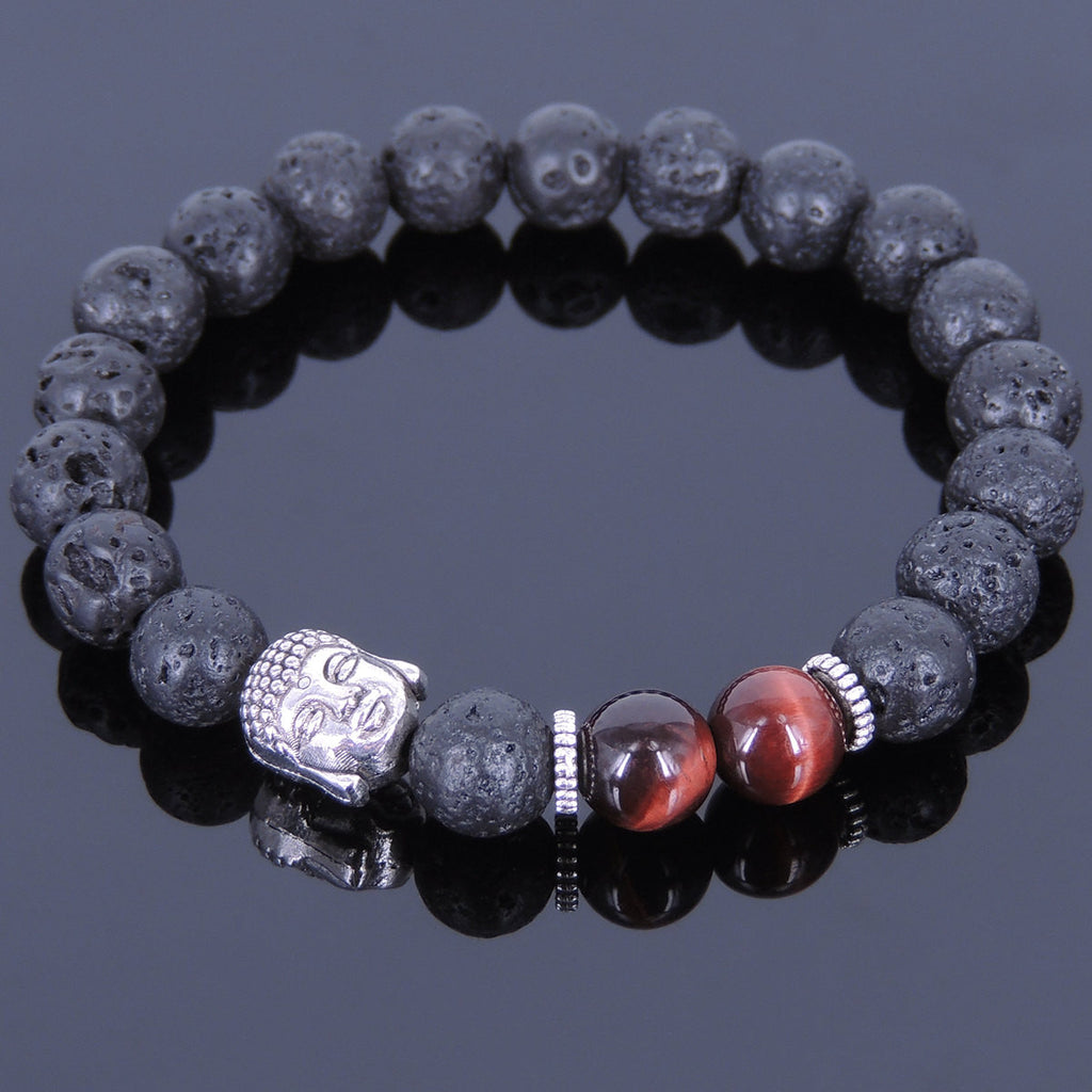 Lava Rock Tiger Eye Tibetan Silver Bracelet Buddha Yoga Mala for Men Women DiyNotion Handmade T066