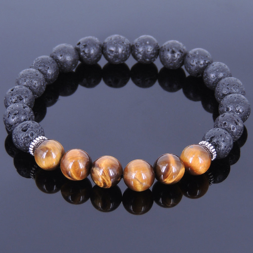 8mm Natural Lava Rock & 8mm Brown Tiger Eye