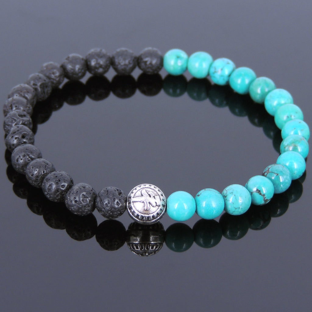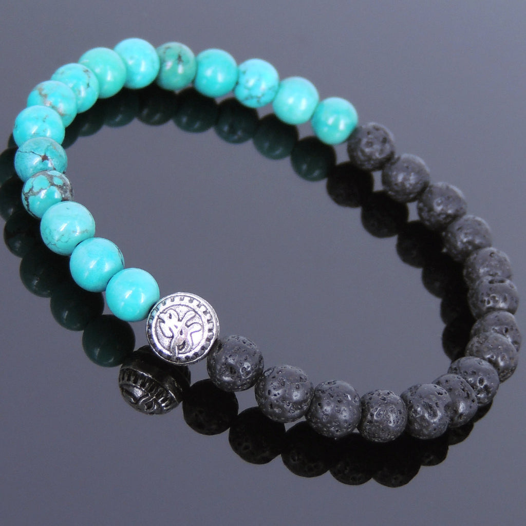 Lava Rock Turquoise Tibetan Silver Bracelet Protection Bead Yoga Mala for Men Women DiyNotion Handmade T041