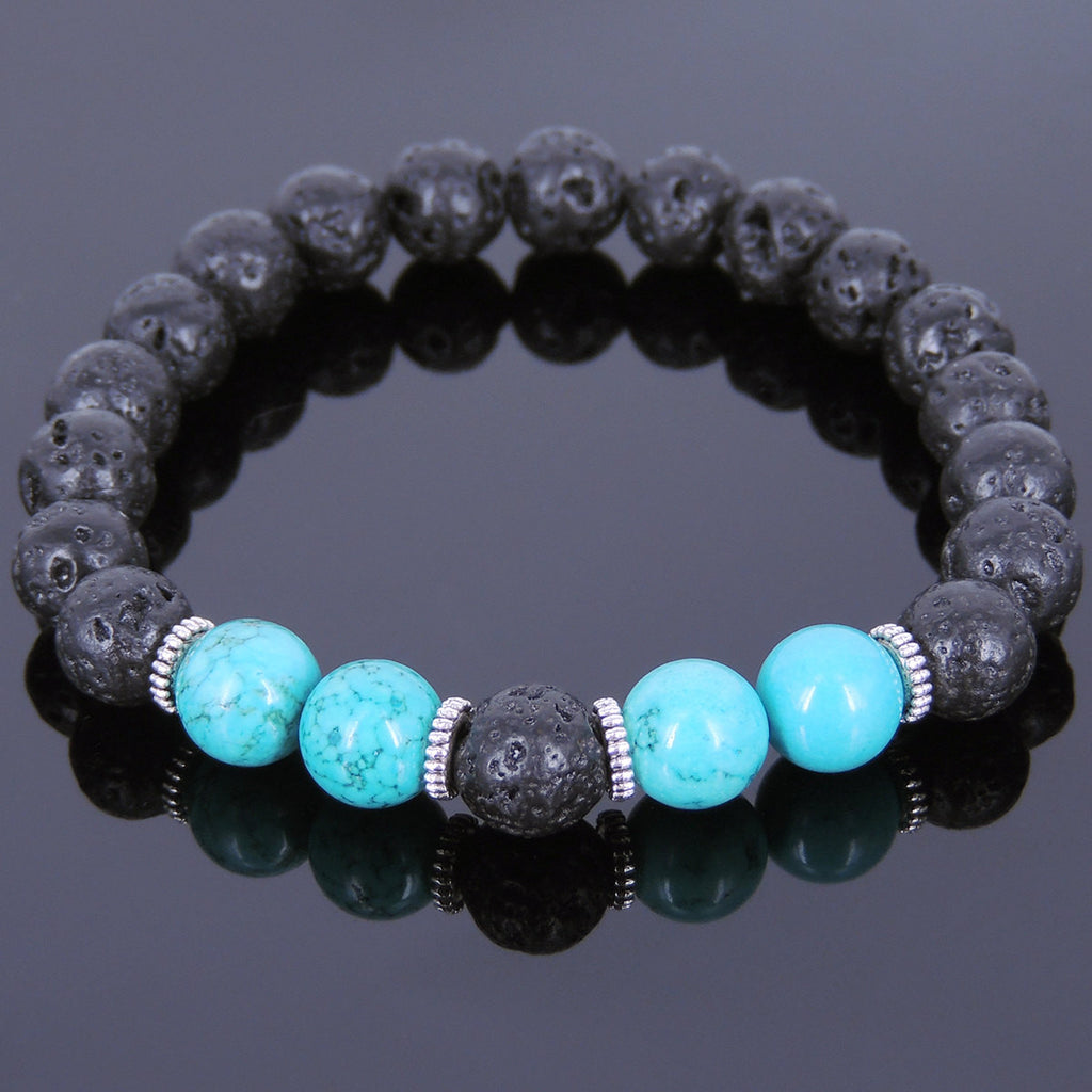 Materials: 8mm Lava Rock,8mm Enhanced Turquoise,Tibetan Silver,Elastic Cords