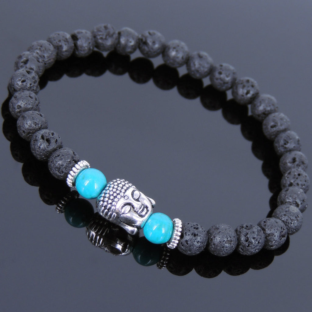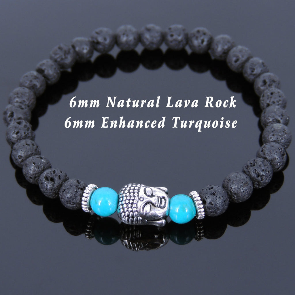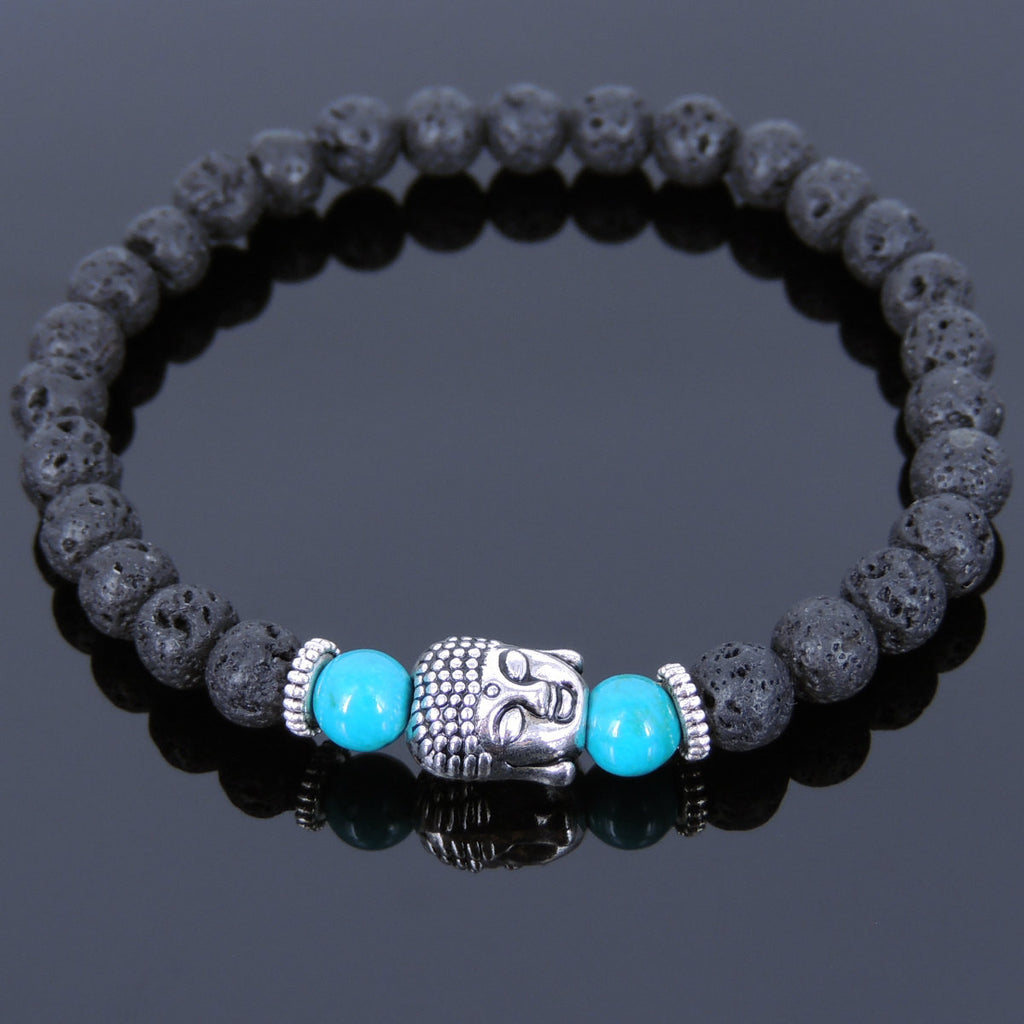 Materials: Lava Rock,Turquoise,Tibetan Silver,Elastic Cords