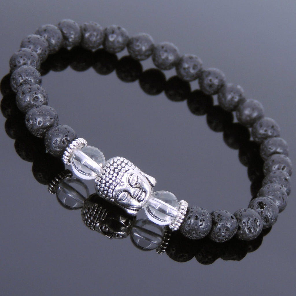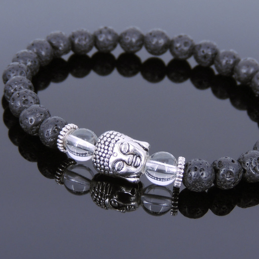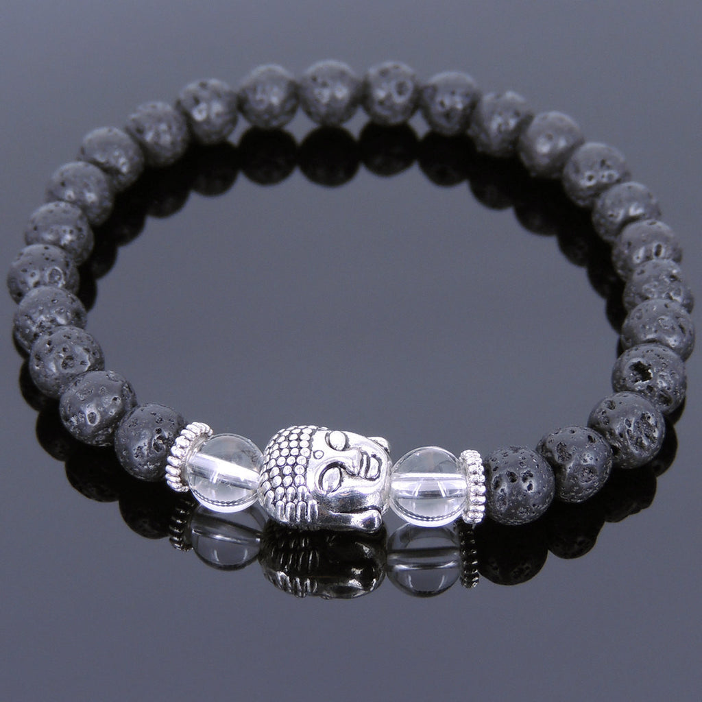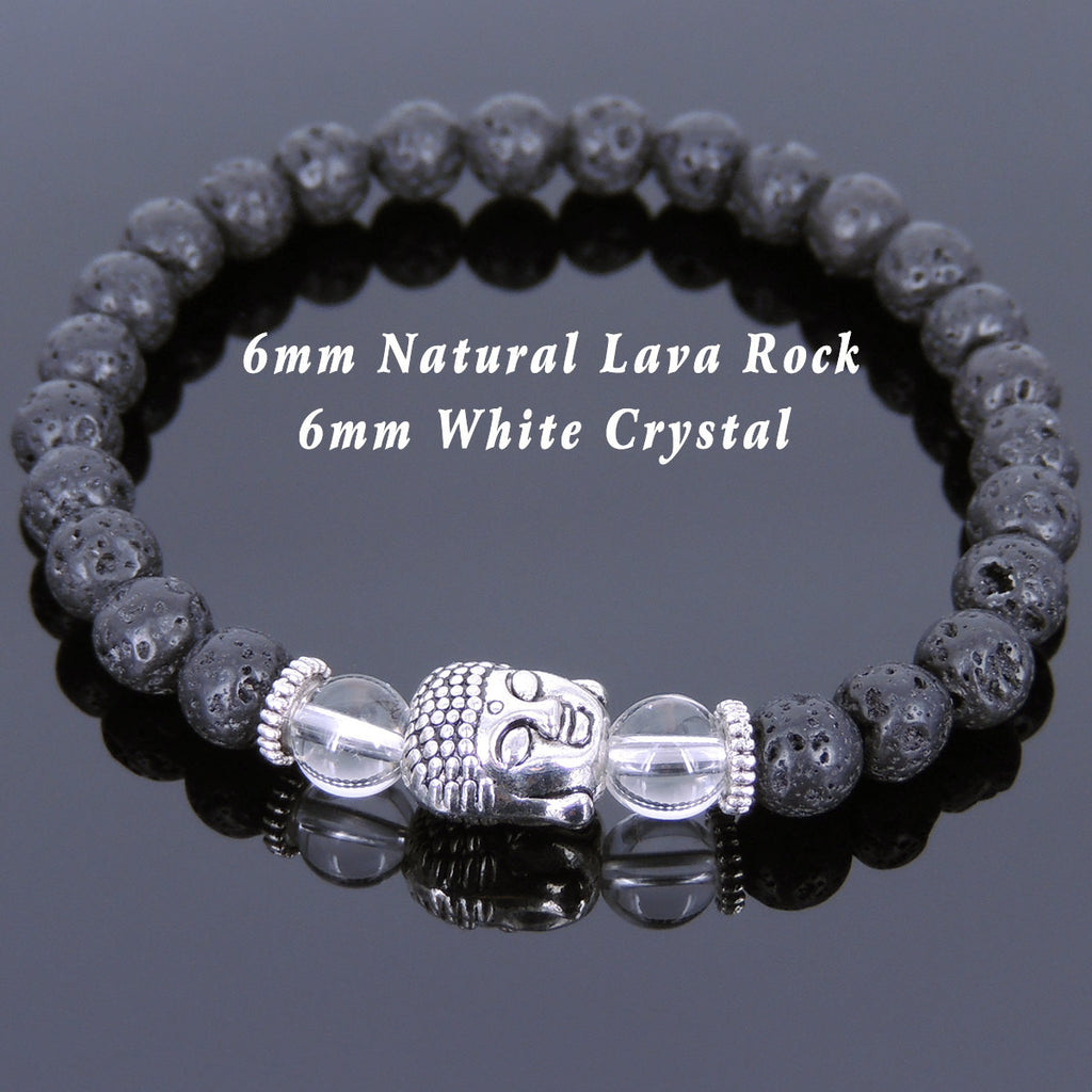 Materials: Lava Rock,White Crystal,Tibetan Silver,Elastic Cords