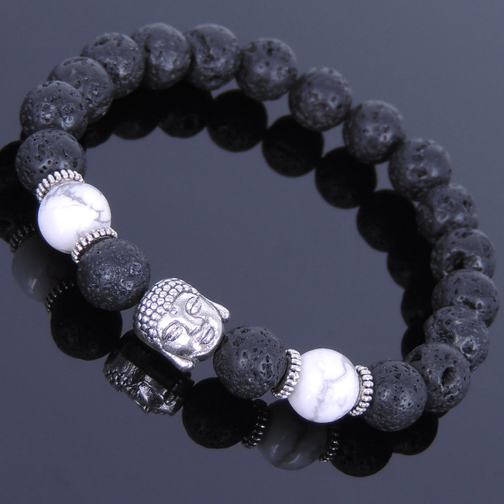 Materials: Lava Rock,White Howlite,Tibetan Silver,Elastic Cords