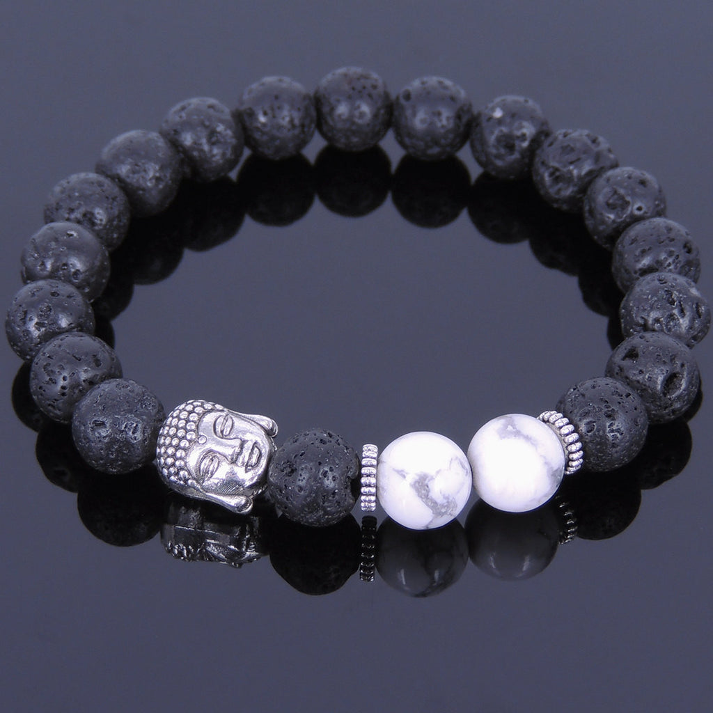 Materials: Lava Rock,White Howlite,Tibetan Silver,Elastic Cords