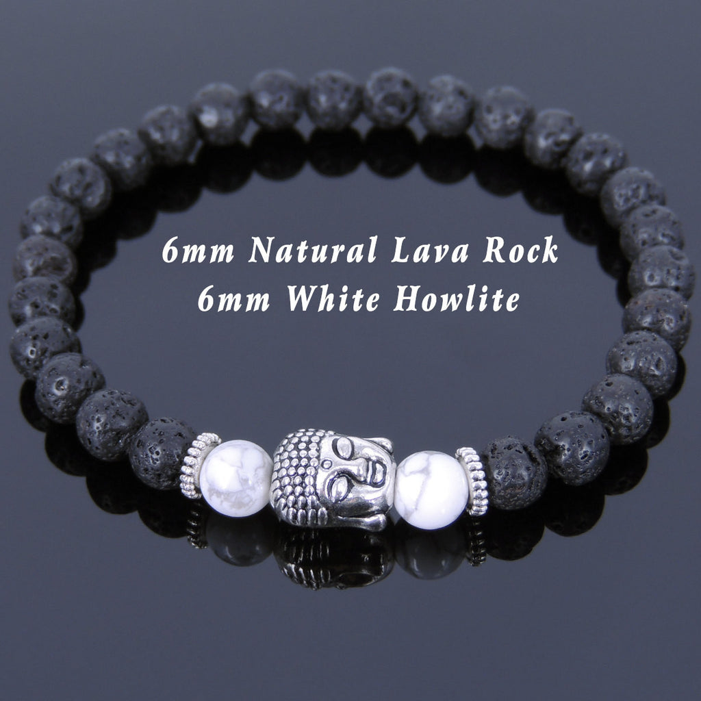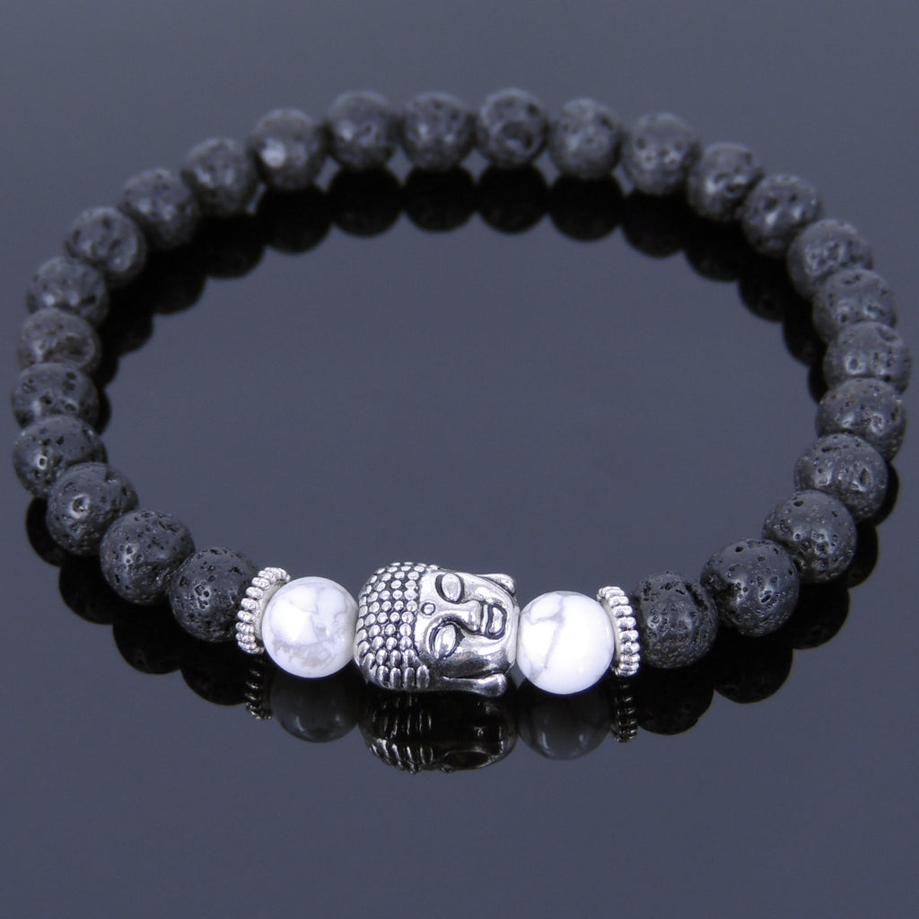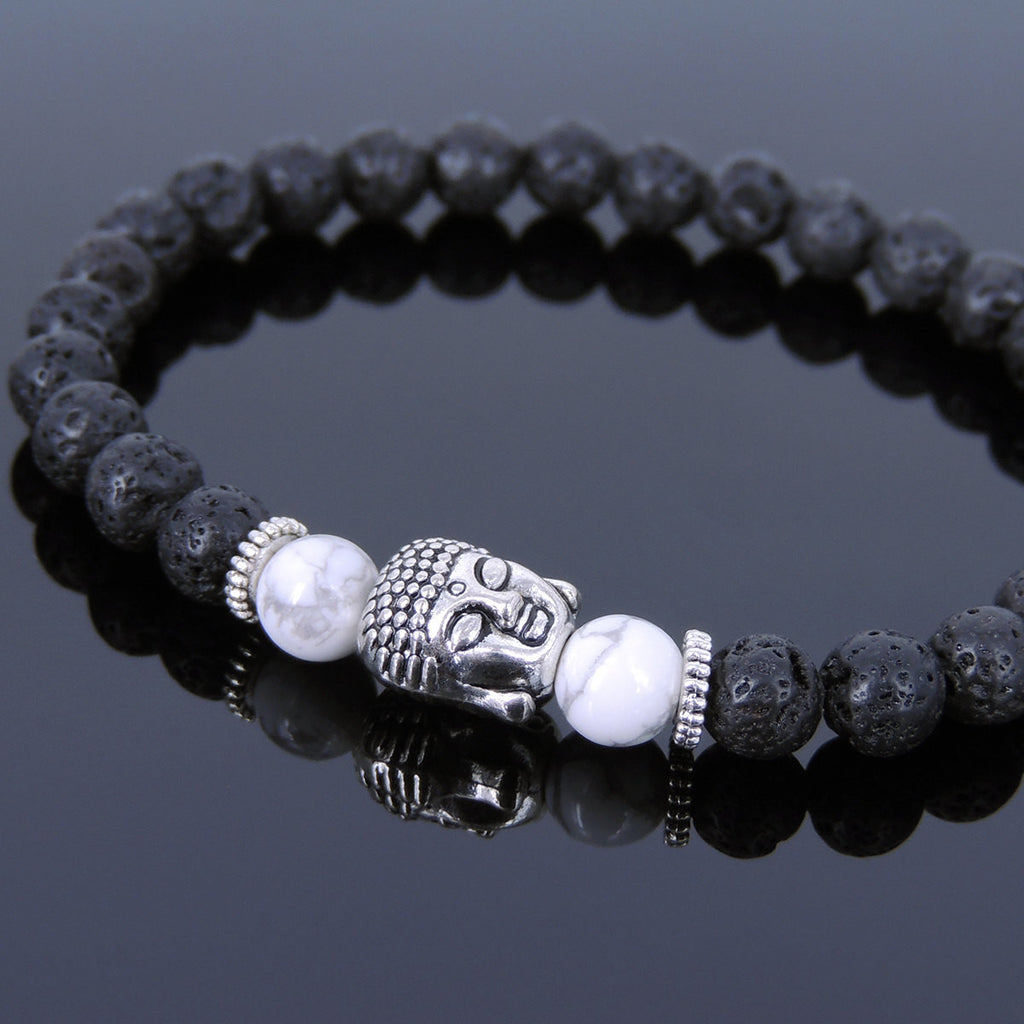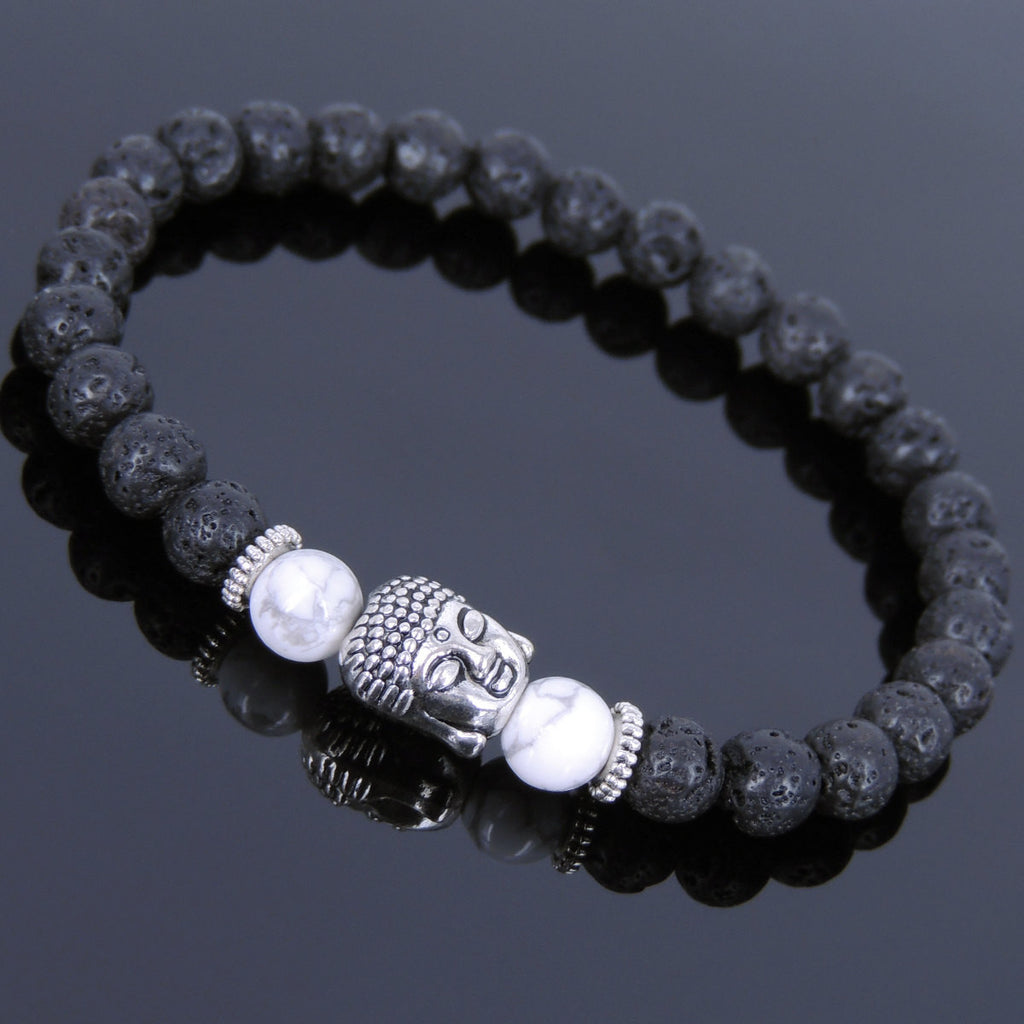 Materials: Lava Rock,White Howlite,Tibetan Silver,Elastic Cords