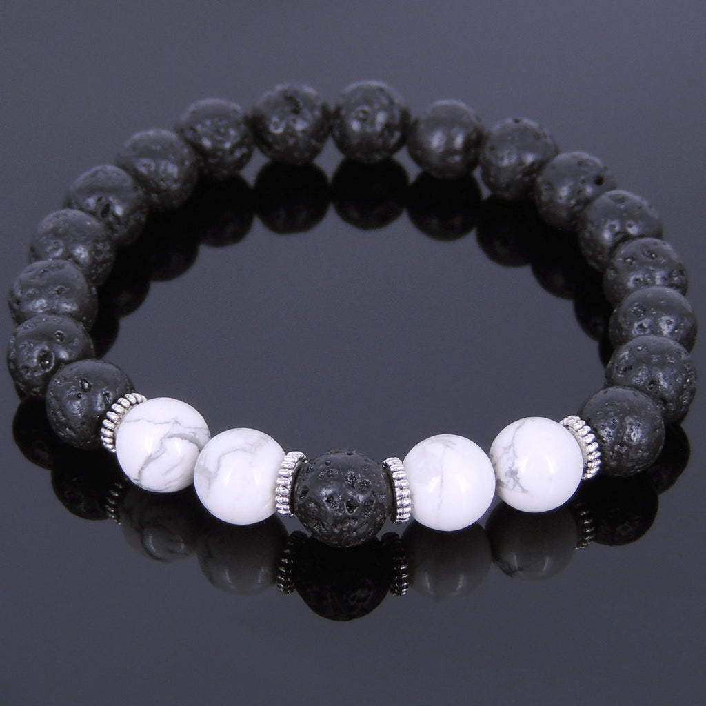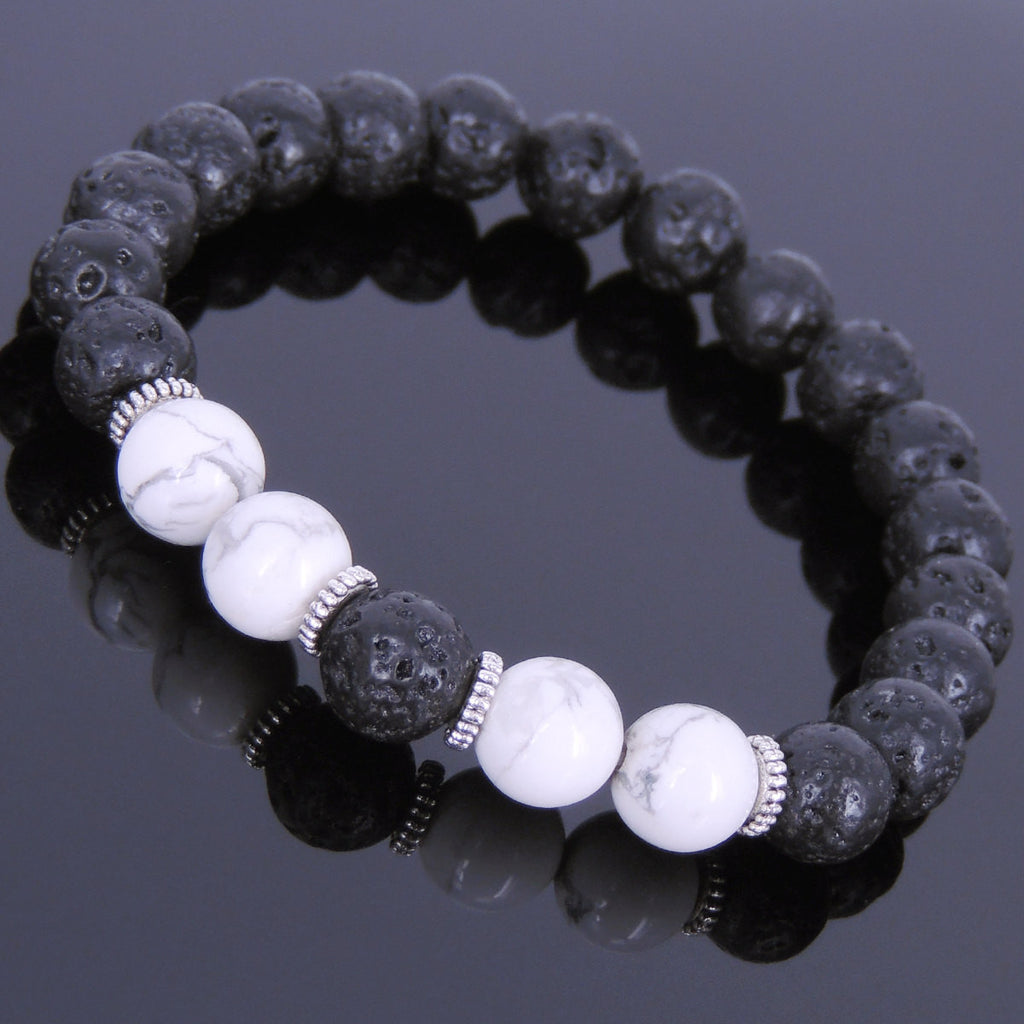 Materials: 8mm Lava Rock,8mm White Howlite,Tibetan Silver,Elastic Cords