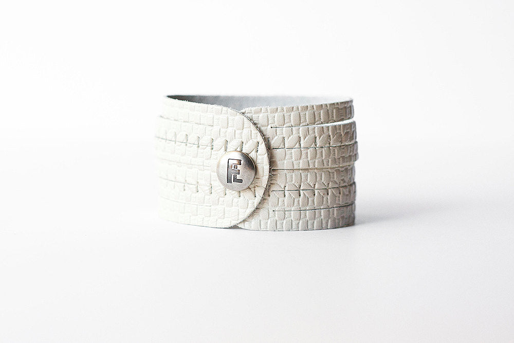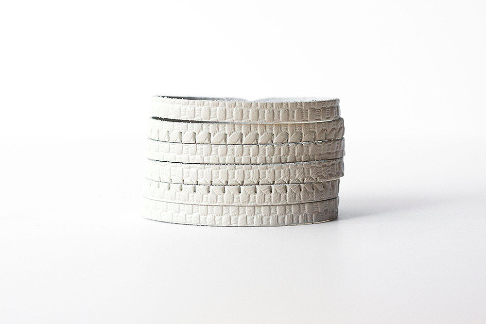 / Leather Bracelet/Original Sliced Cuff/Woven Cream