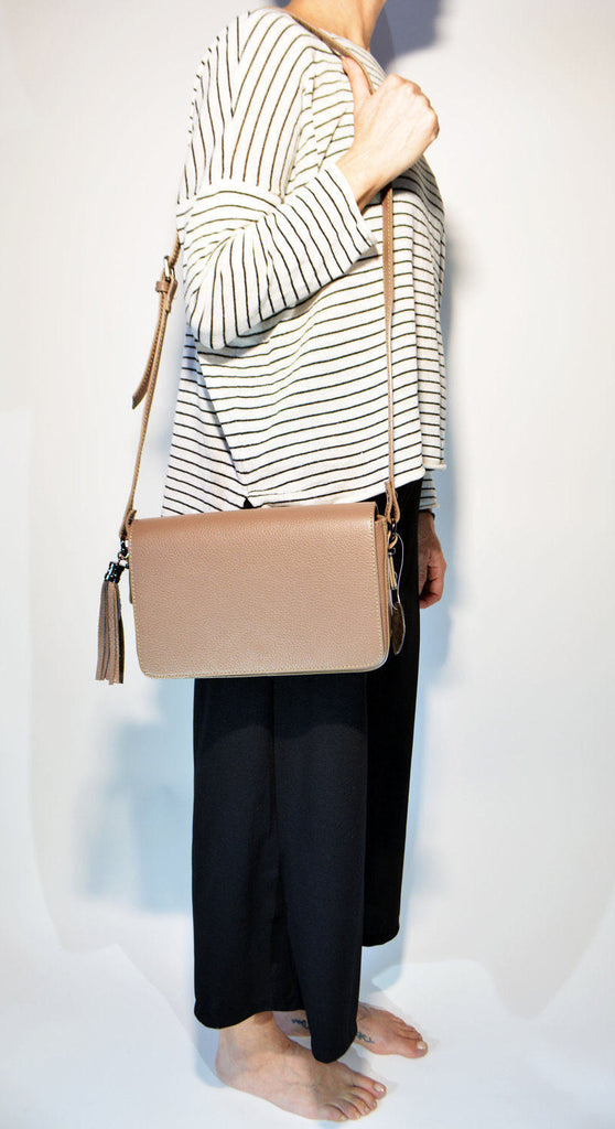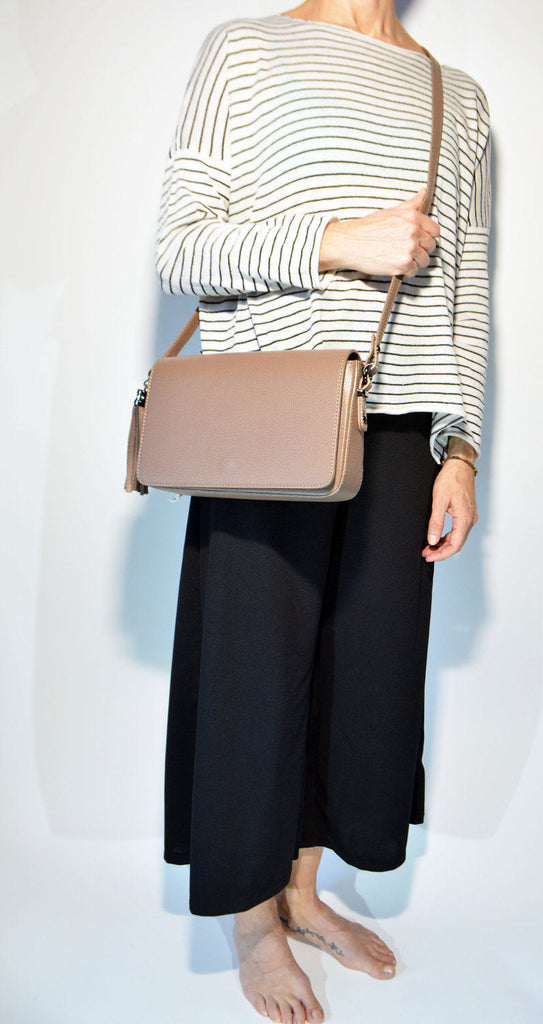 Leather Cross Body Bag Womens Leather TaupeShoulder Bag Cross Body Purse Clutch Bag Black Italian Leather Bag Mother's Gift Borsa di Pelle