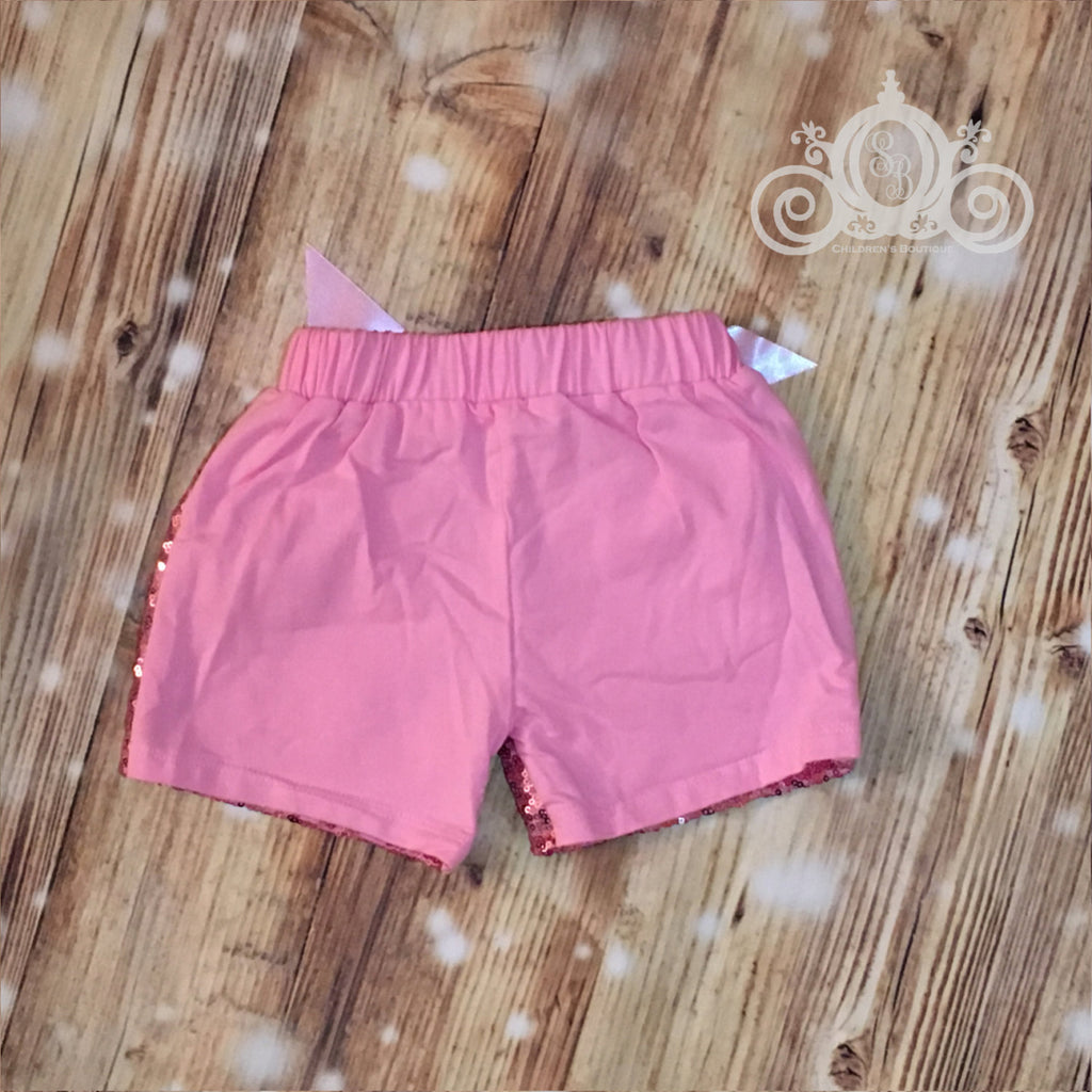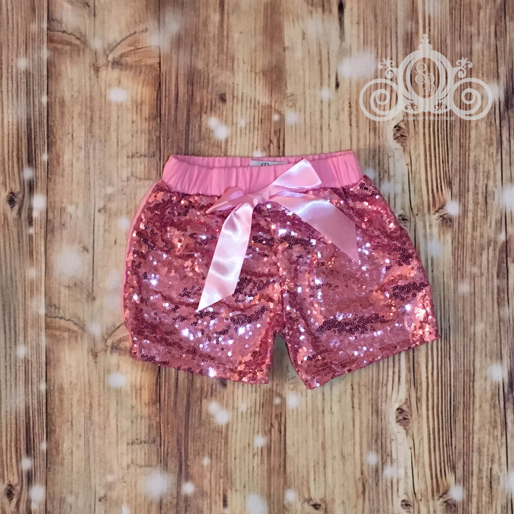 This item is available for this exact IN STOCK color and size ONLY! nnWe are now producing new inventory for our spring collection. Those items should be available by end of Feb or beginning of March. If you would like to reserve your pair now, please place your order and do so. All items are availed on a first come, first serve basis. Priority will be given to those who have pre-ordered and then filled from there. We work very hard to maintain available stock at all times but, sometimes, an item may be high in demand and sell out unexpectedly. See promise to work fast to get them restocked as soon as possible. nnOur little girls sequin shorts have a fully sequined front with bow and body is solid cotton knit. Super soft and perfect for casual meets glam! nnCombine with one of our custom ruffle shirts for the perfect look!nnTrue to size