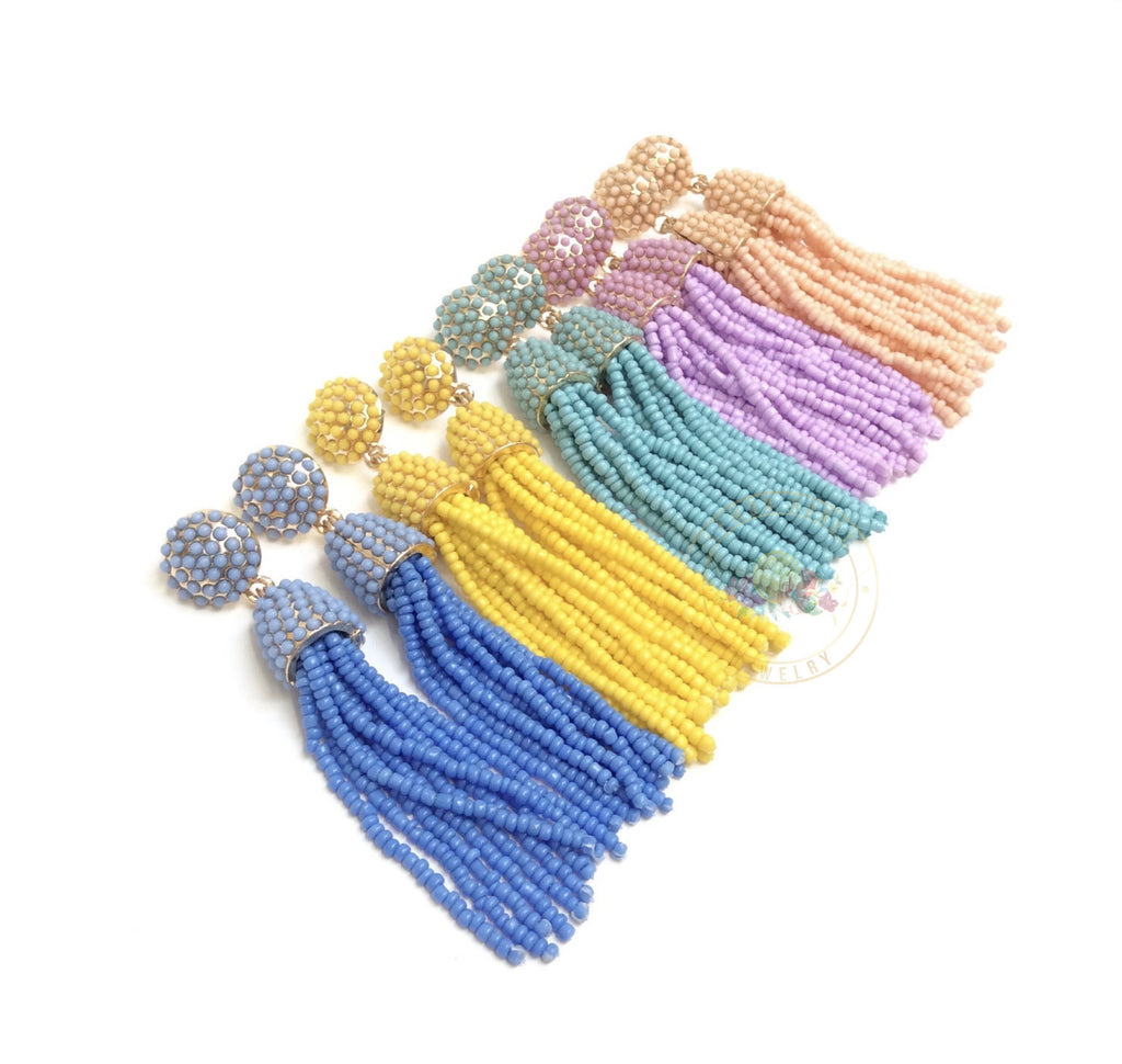 Beaded Tassel Earrings for the daring fashionista! These hand beaded tassel earring are LIGHTWEIGHT and come with a supportive earring back! Wear them all day without worry.