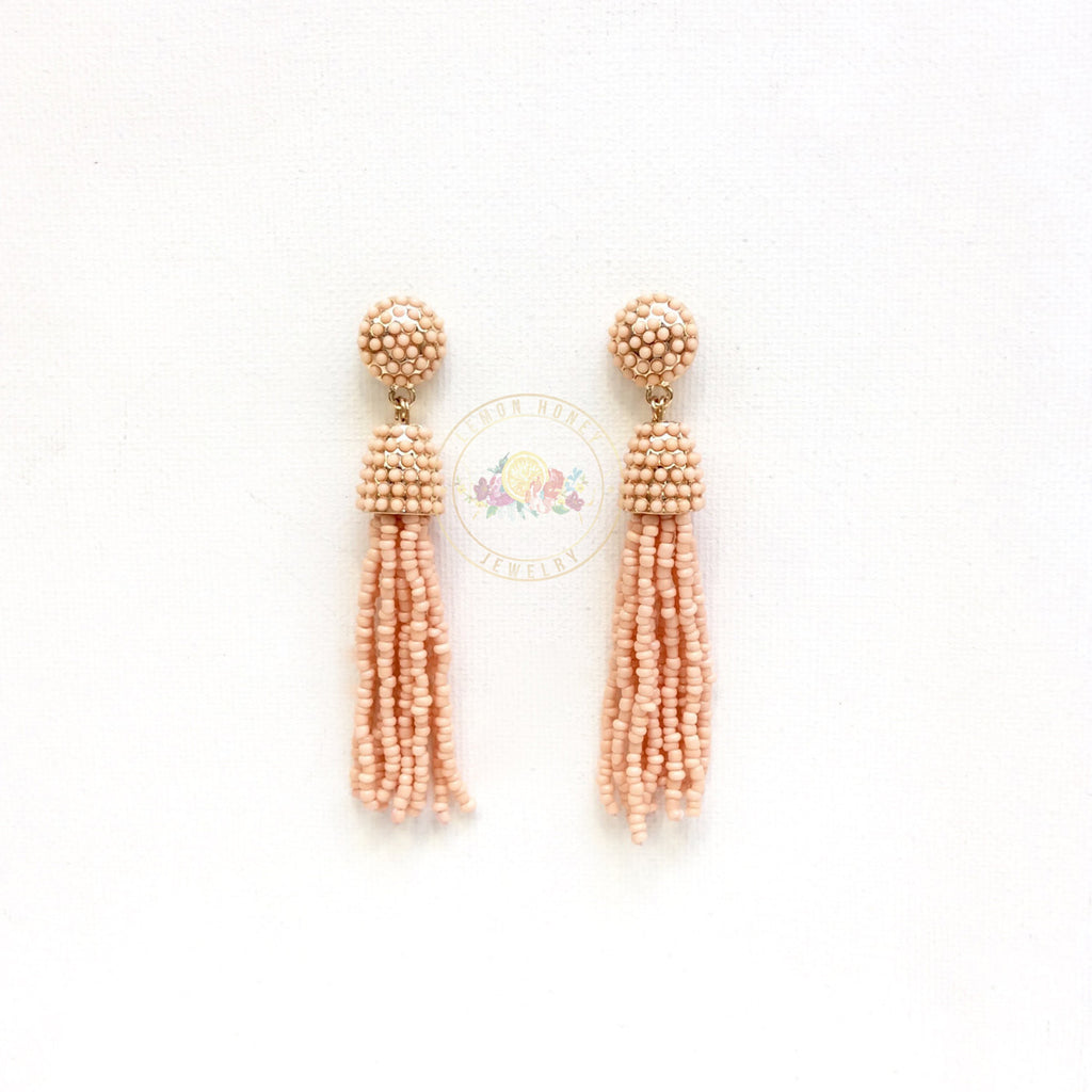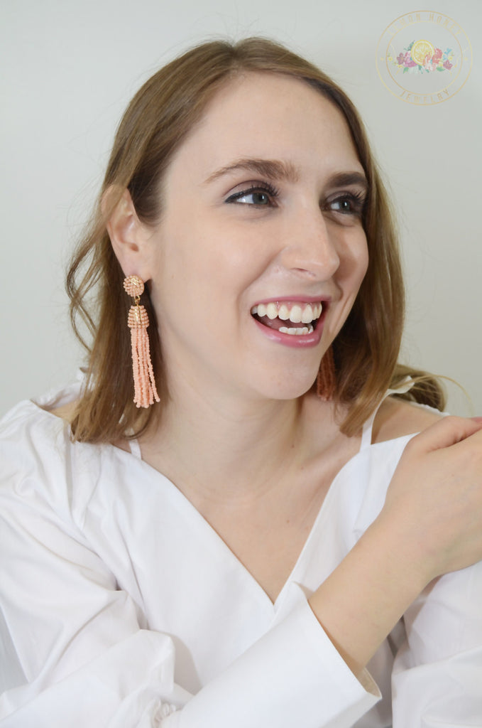 This listing is for one pair of PEACH beaded tassel earrings.