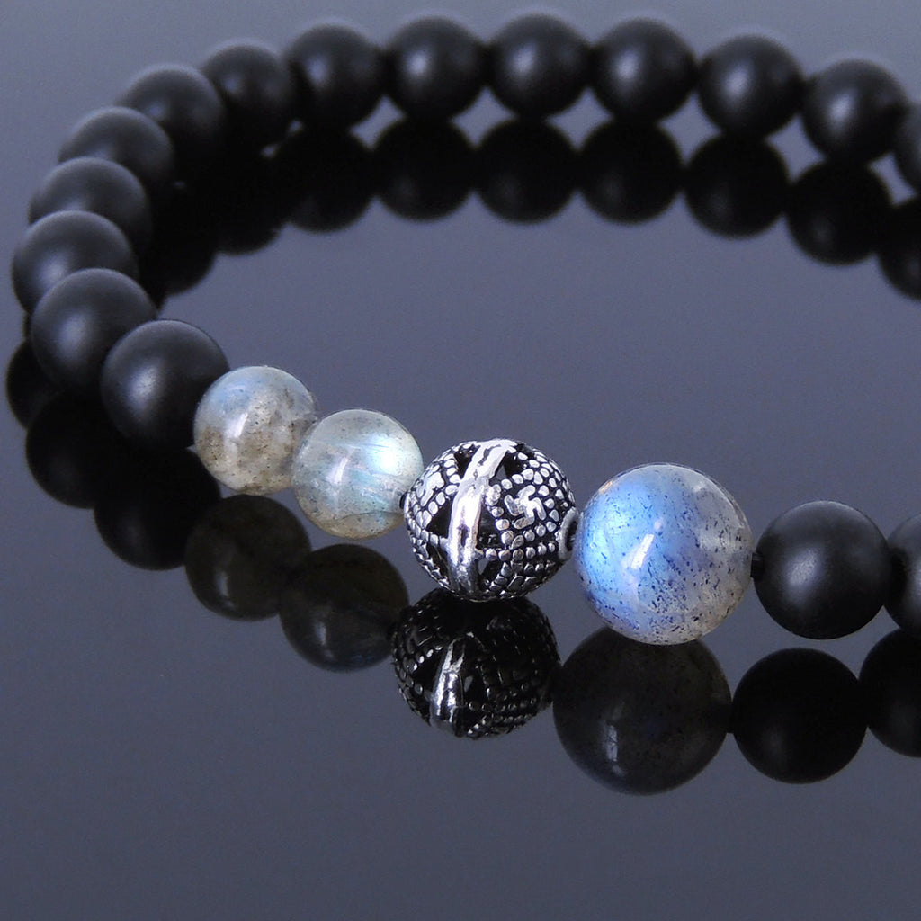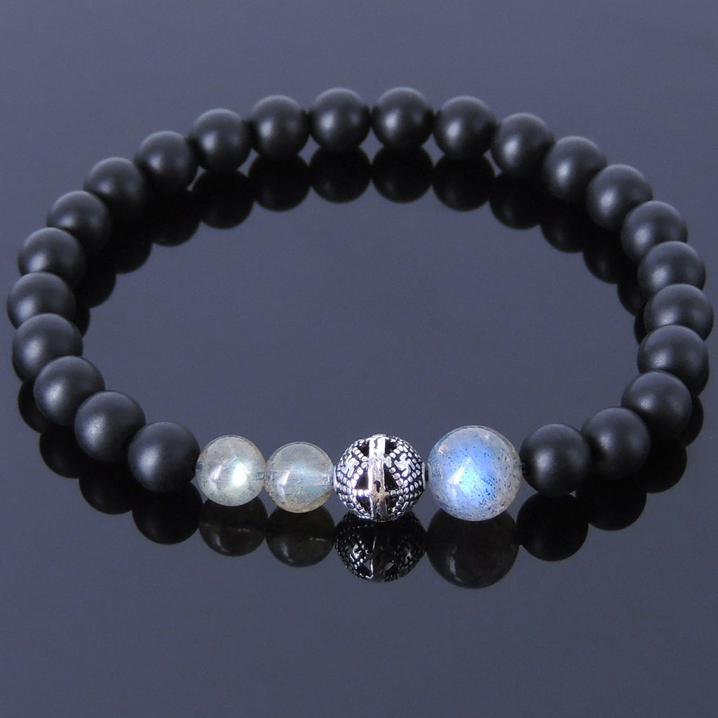 Matte Black Onyx Labradorite Sterling Silver Bracelet Gemstone 925 Bead Men Women DiyNotion Handmade BR201