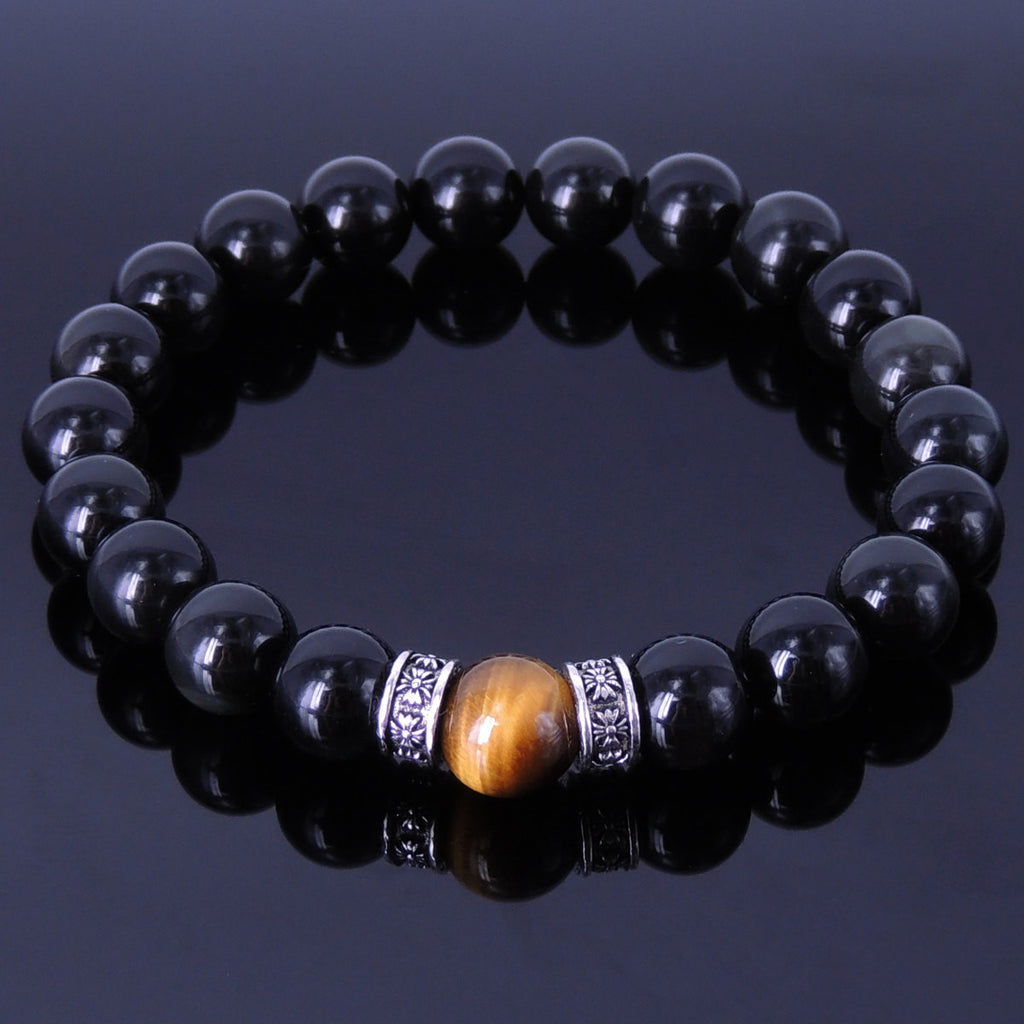 Materials: Gemstone,Black Obsidian,Tiger Eye,925 Sterling Silver,Elastic Cords