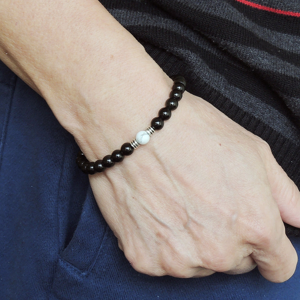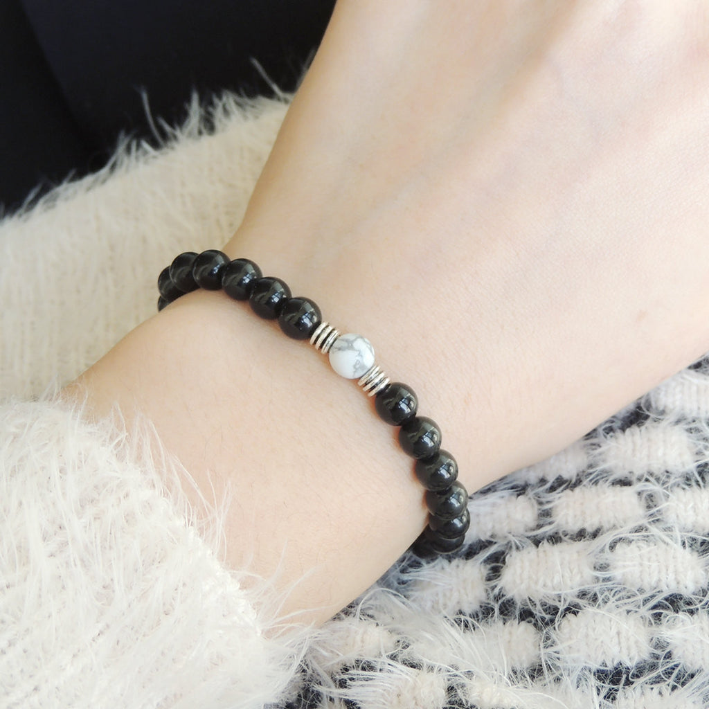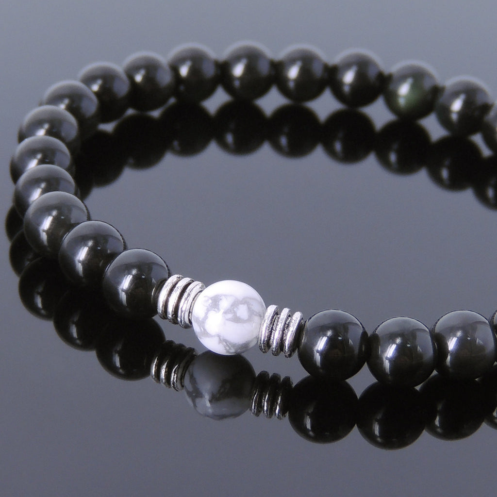 Materials: Gemstone,Black Obsidian,White Howlite,925 Sterling Silver,Elastic Cords