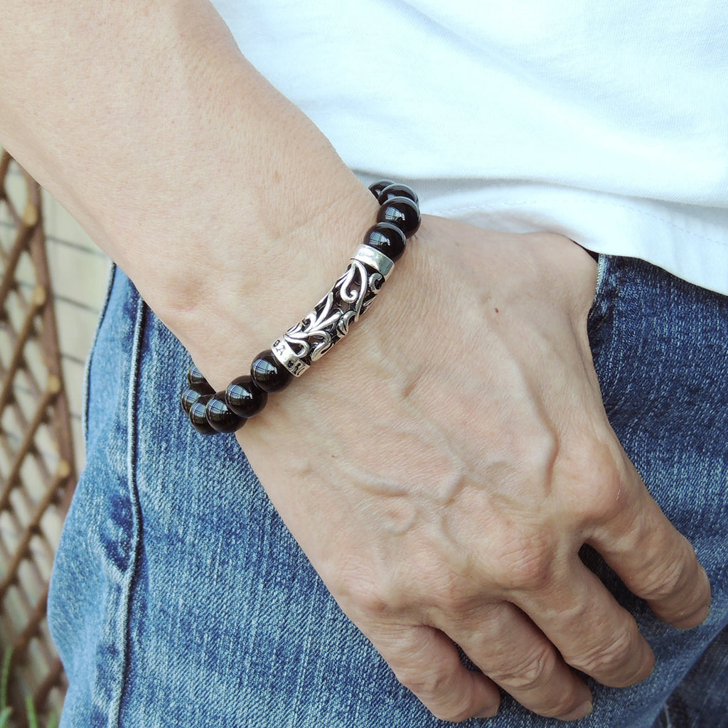 Men Women Bright Black Onyx Bracelet 925 Stamp Sterling Silver Lucky Charm DiyNotion Handmade BR965