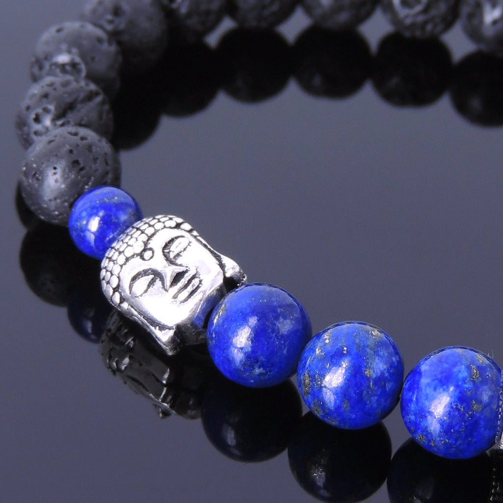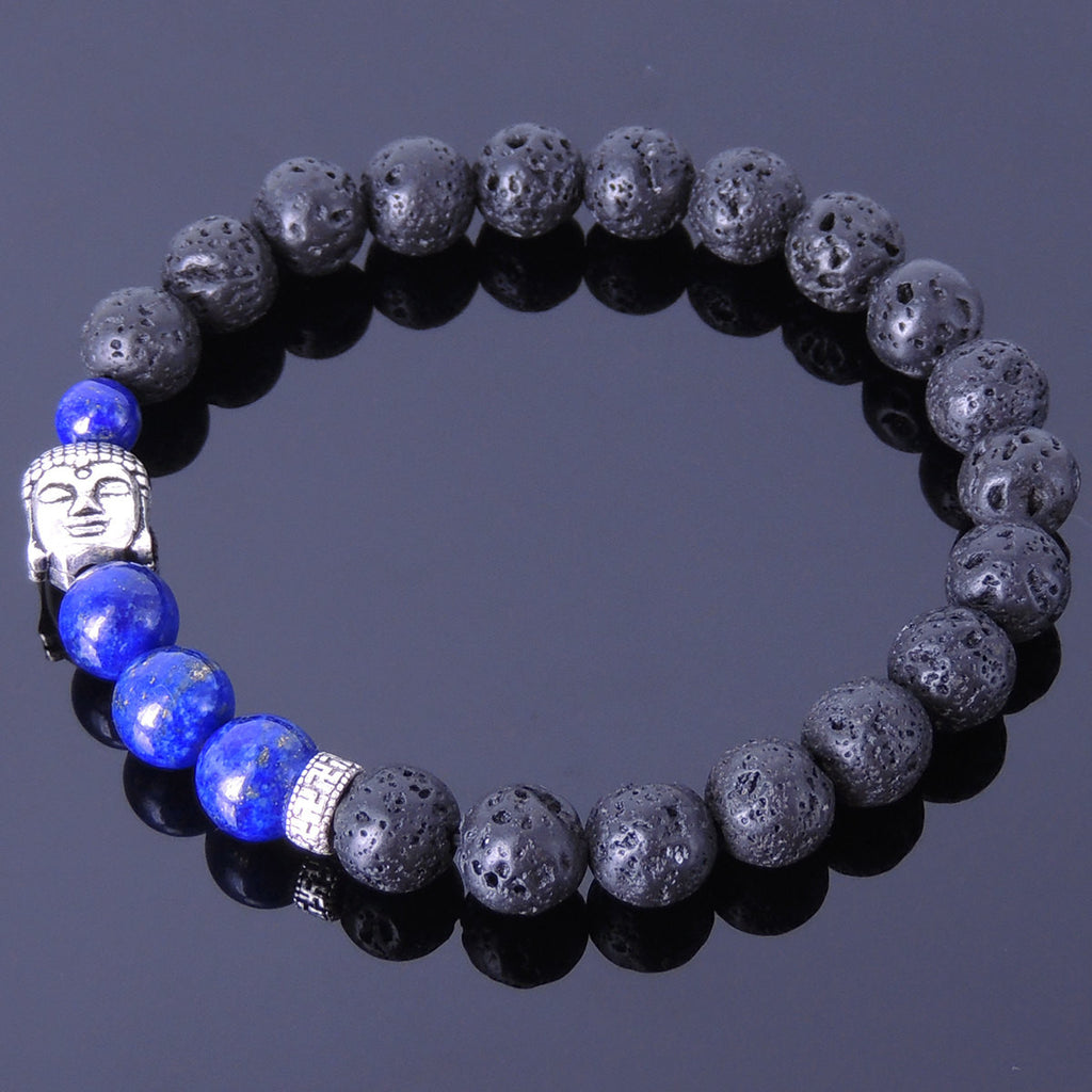 Materials: Gemstone,S925 Sterling Silver,Lava Rock,Silver Spacer,Silver Buddha,Lapis Lazuli