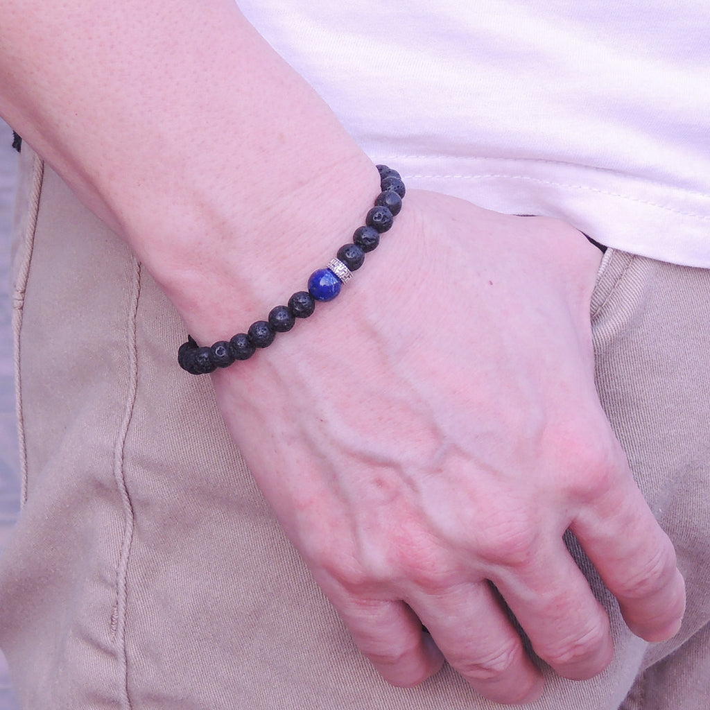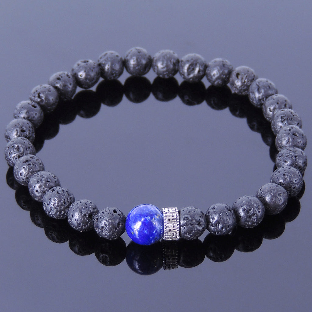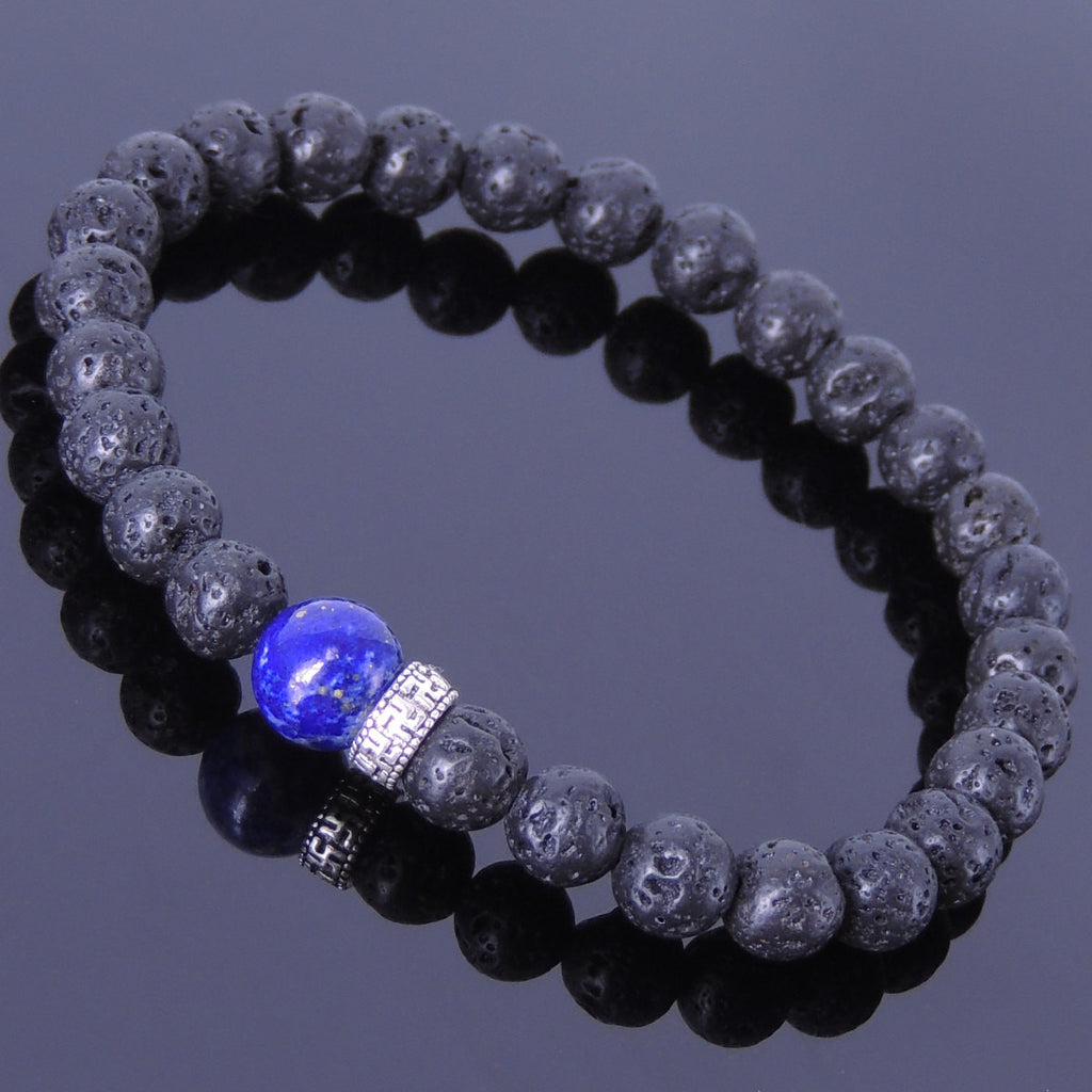 Men/Women Gemstone Bracelet Lava Rock Lapis 925 Sterling Silver Mantra Spacer DiyNotion BR374